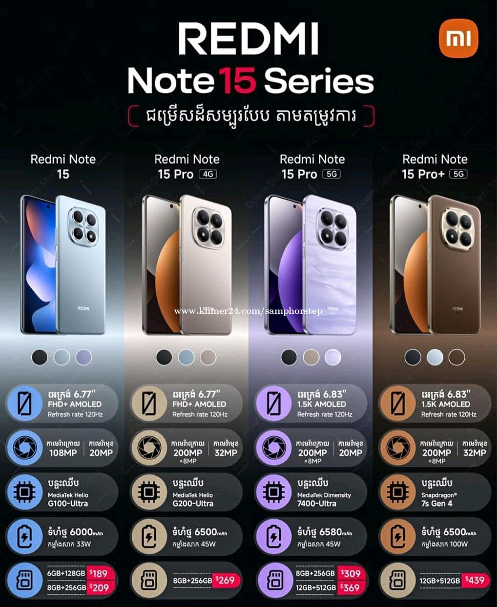 REDMI Note 15 Series មកជាមួយ Corning® Gorilla® Glass Victus® 2👇🏻 កម្រិតភាពធន់នឹងការធ្លាក់ដល់ទៅ 2.5m មានភាពធន់គ្រប់គ្រាន់សម្រាប់ការប្រើប្រាស់ប្រចាំថ្ងៃ💪 👉🏻ចេញតម្លៃហើយ!! តម្លៃចាប់ពី $189 តែប៉ុណ្ណោះ💥 មានកាដូពីក្រុមហ៊ុនទៀ ទាក់ទងមកឥលូវសម្រាប់ប្រឹក្សានឹងតំលៃពិសេស