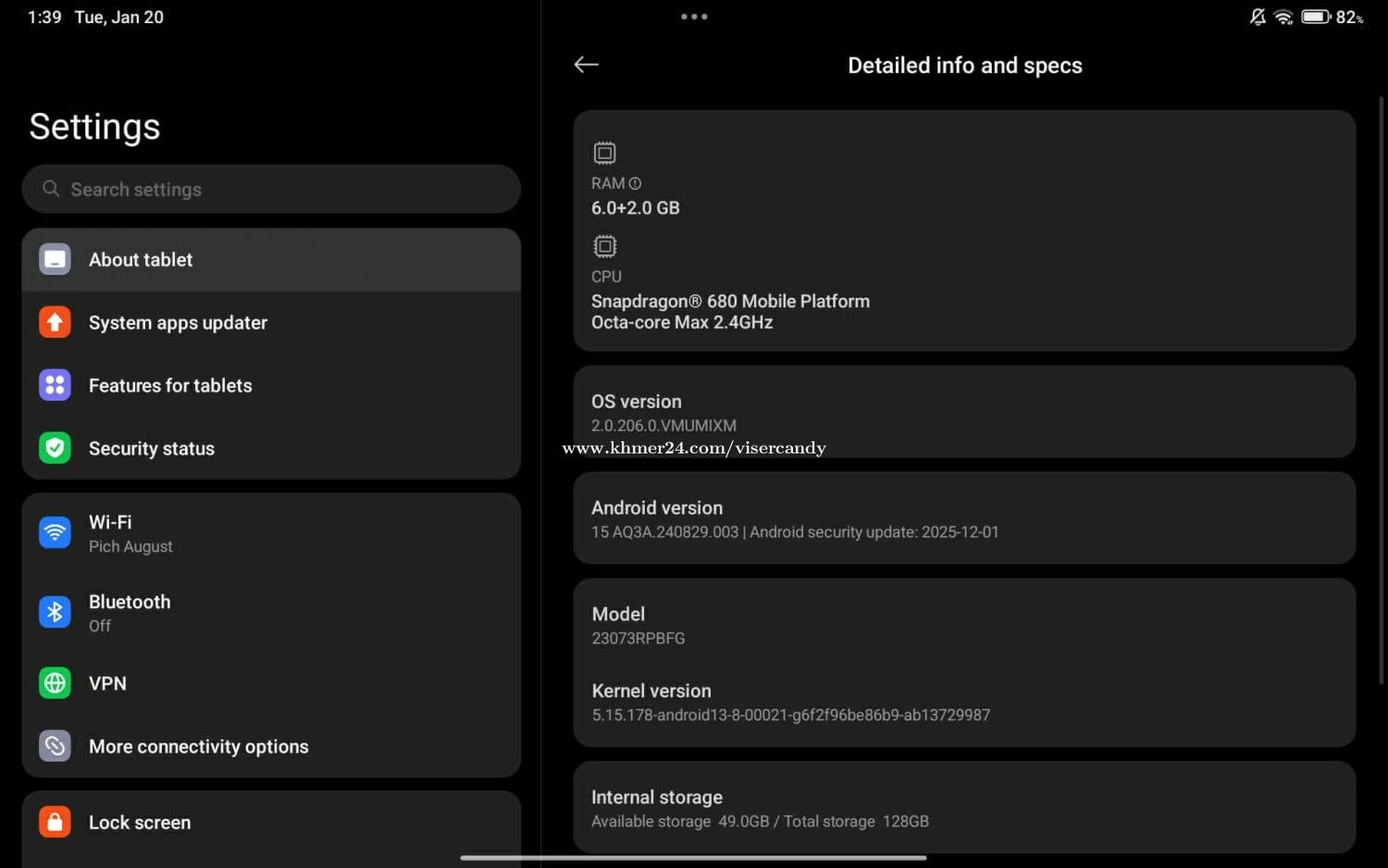 នៅសុំណុំ wifi only កាលទិញថ្មីប្រអប់ នៅស្អាត អត់ដែលធ្លាក់ ស្ទើរខ្នងតិចៗដូចរូបcaseស៊ី តែអេក្រង់ស្អាតបិទ screen ram 6g storage 128g speaker 4 គ្រាប់ពីរោះញាក់