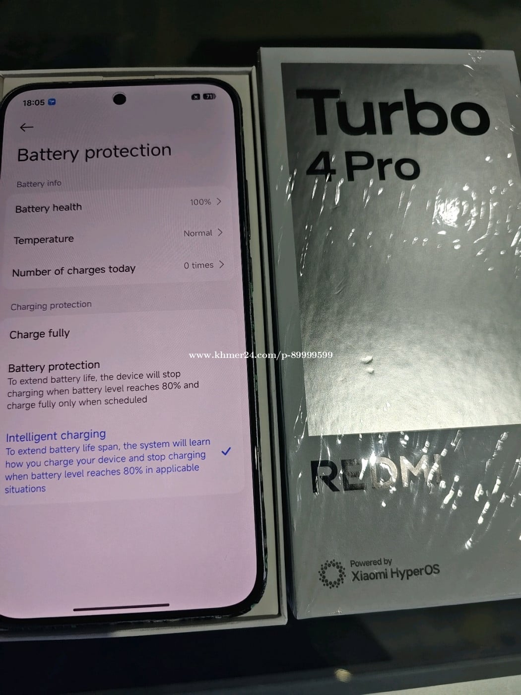 Redmi Turbo 4 Pro មួយទឹកស្អាត 99% Ram12G/256G មានគ្រឿងគ្រប់និងប្រអប់។