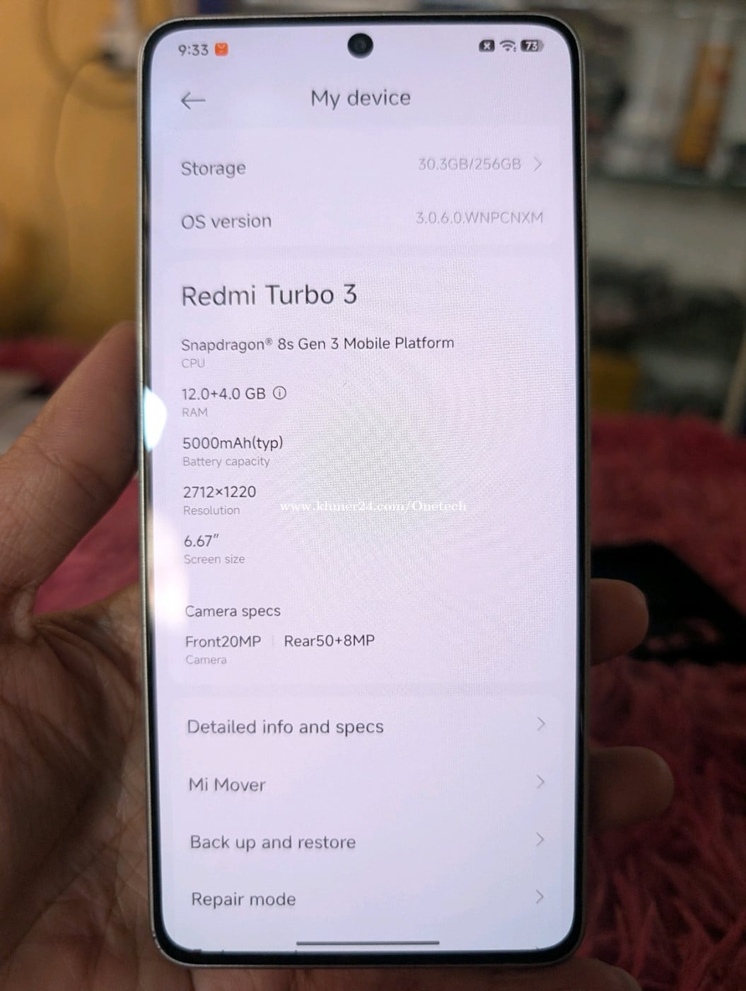 Redmi Turbo3 CH 97% R8/256g កាមេរ៉ាមុខក្រោយច្បាស់ធម្មតា បញ្ហាស្ទឺកែងក្រោមបន្តិចដូចរូប ស្គេនក្រយៅដៃនៅលើអេក្រង់, AMOLED ដំណើរការរហ័សធម្មតាមិនមានបញ្ហាអី អាចយកទៅលេងហ្គេមធំៗបាន ថ្មនៅកាន់ តេឡេក្រាម 010xxxClick To Call 2 0 2 ទីតាំងភ្នំពេញ