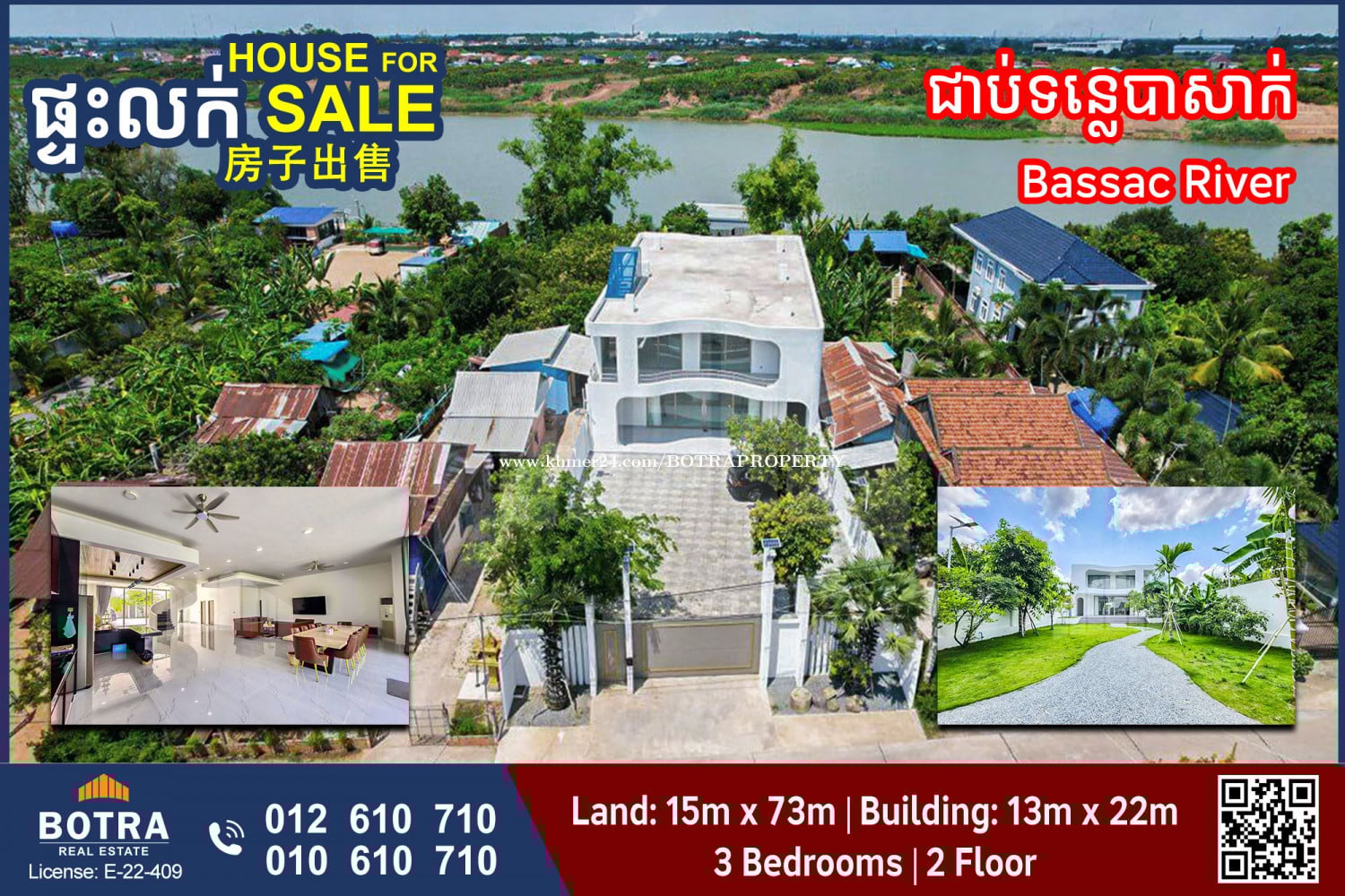Relax Villa Brand New For Sale ๐ The river breeze and atmosphere are very good, the back is on the Bassac River, the front is on the concrete village road โข Land size: 15m x 73m โข House size: 13m x 22m โข 2 floors + roof floor โข Concrete roof floor can be used as a Sky bar โข Bedrooms: 03 โข Storage room: 01 โข Parking: 08 ๐ There is a spacious riverside recreation area, for party over 50 people. ๐ Selling at a special price (negotiable) Location: https://goo.gl/maps/pVK7JxwAtH5puVZt8 ๐ For more pictures: https://t.me/Sakhom/6528?single โโโโโโโโโ Contact us now! ๐ 012610xxxClick To Call (Cellcard) ๐ 010610xxxClick To Call (Smart) โถ๏ธ t.me/BotraRealEstate (Chat)