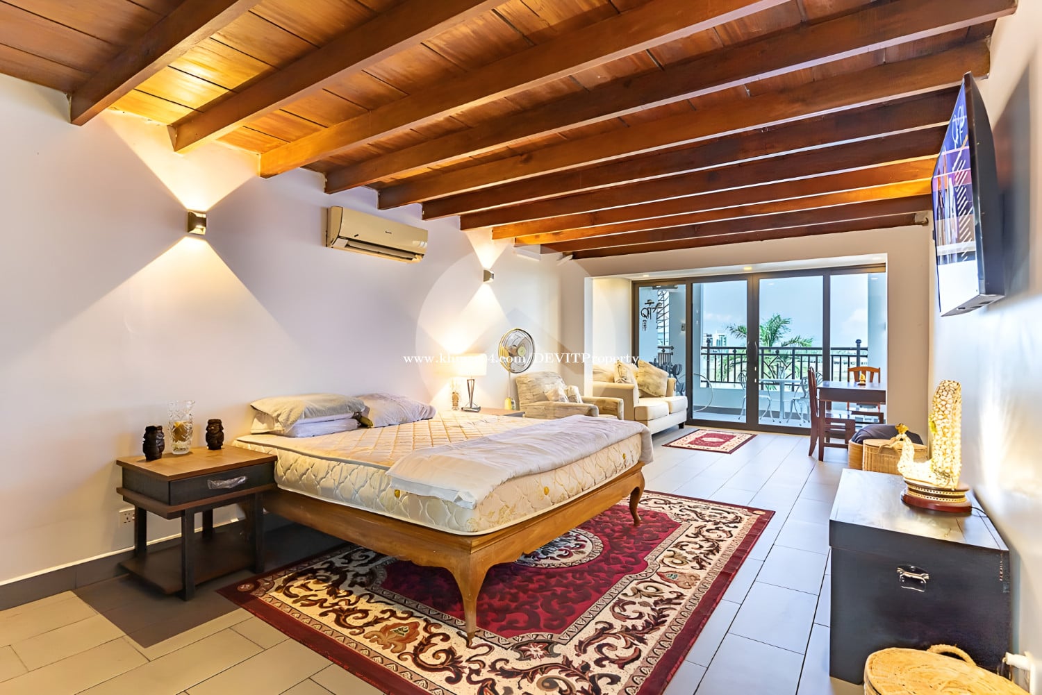 This fully furnished and newly renovated apartment sale features a rustic atmosphere that will offer a balanced abode for city living. Composed of Two (2) bedrooms, it would be suitable for a small family. Moving back to the living hall, everyone can enjoy a relaxing view of the Tonle Sap River from the balcony which also ensure a soothing breeze for the lounge and dining area. Located: Phsar Kandal 1, Daun Penh, Phnom Penh - 2 Bedrooms, 2 Bathrooms, Fully furnished, Mezzanine - Size 4m x 22m - Kitchen, Balcony, Roof top terrace Contact: 089623xxxClick To Call/ 081971xxxClick To Call Telegram: https://t.me/devit008 Apartment Property Channel: https://t.me/devit0010