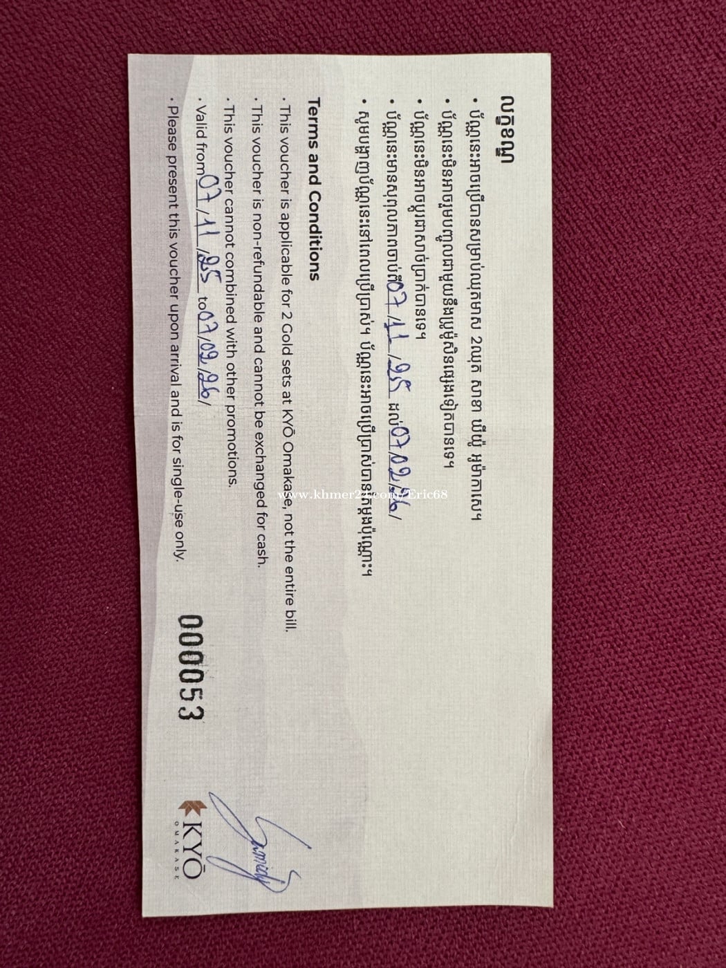 Resell Gold set voucher KYO omakase 2pax. Expired date: From now unit 07 Feb 2026. Thanks