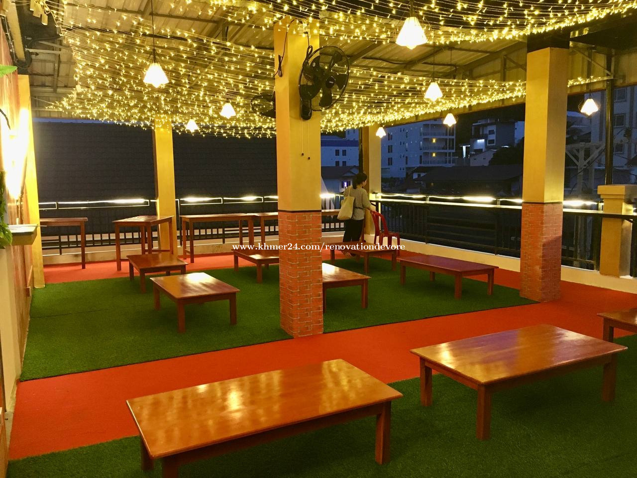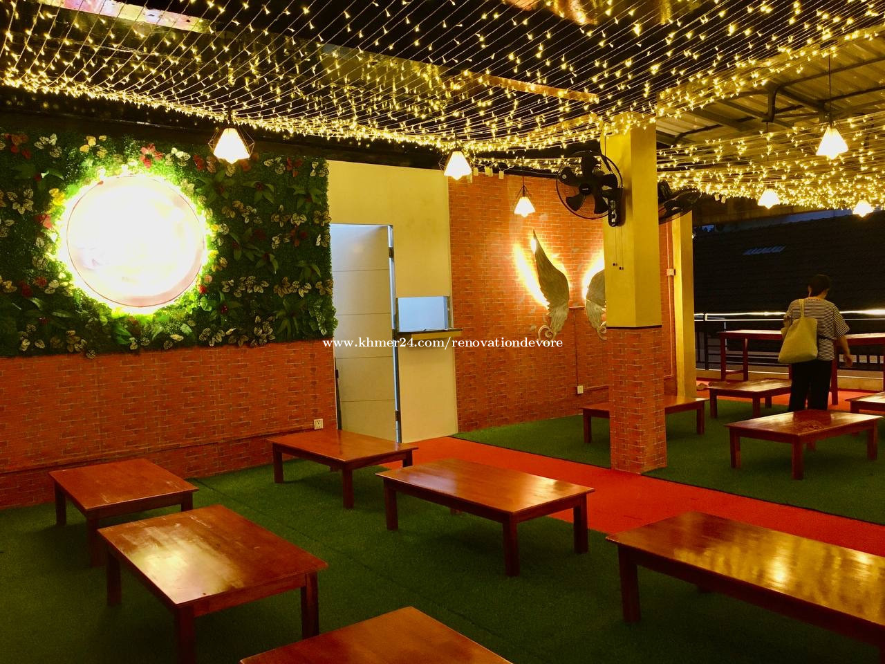 Cielling decor Floor tile Cement floor smoothly Wall painting Decor art wall Lighting design Bar counter Coffee center Kitchen renovation New bathroom Sky bar