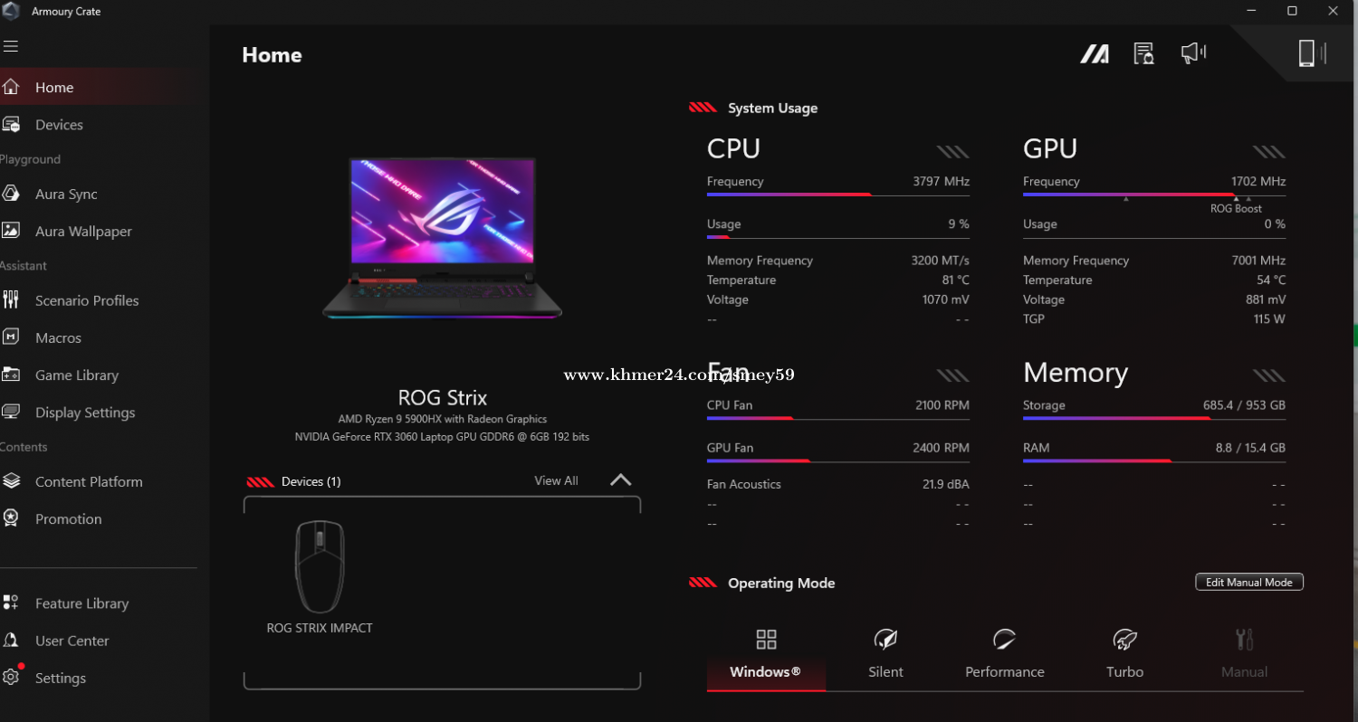 ROG Strix G713QM Screen 17.3" FHD+ 300Hz Refresh Rate CPU AMD Ryzen 9 5900HX Graphic Nvidia GeForce RTX 3060 GDDR6 RAM 16gb DDR5 Storage 1Tb SSD M2 Drive ROG carrying Bag Mouse ROG Impact battery still very good Original Condition some keys scratch coz of everyday using Bought in Late 2022