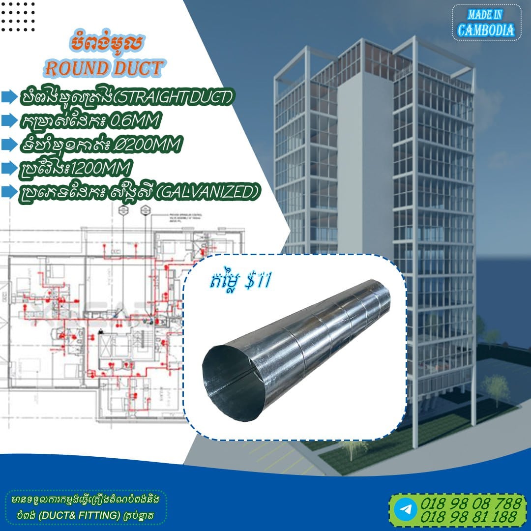 ប្រើប្រាស់សម្រាប់៖ -ជាបំពង់ខ្យល់ប្រើសម្រាប់បញ្ចូនខ្យល់ទៅក្នុងទីតាំងនីមួយៗ -ជាបំពង់នាំខ្យល់ត្រឡប់ចូល HVAC Unit វិញដើម្បីអោយមានបន្ដូរខ្យល់ចេញចូល -ជាបំពង់ដឹកនាំខ្យល់ដែលមានខ្លិនមិនល្អចេញពីទីតាំងនីមួយៗ -ជាបំពង់ខ្យល់ប្រើសម្រាប់បញ្ចូនខ្យល់ស្រស់ស្រាយបរិសុទ្ធទៅក្នុងទីតាំងនីមួយៗ -ជាបំពង់ប្រើសម្រាប់បឺតផ្សែងចេញពីផ្ទះបាយឬកន្លែងមានផ្សែង