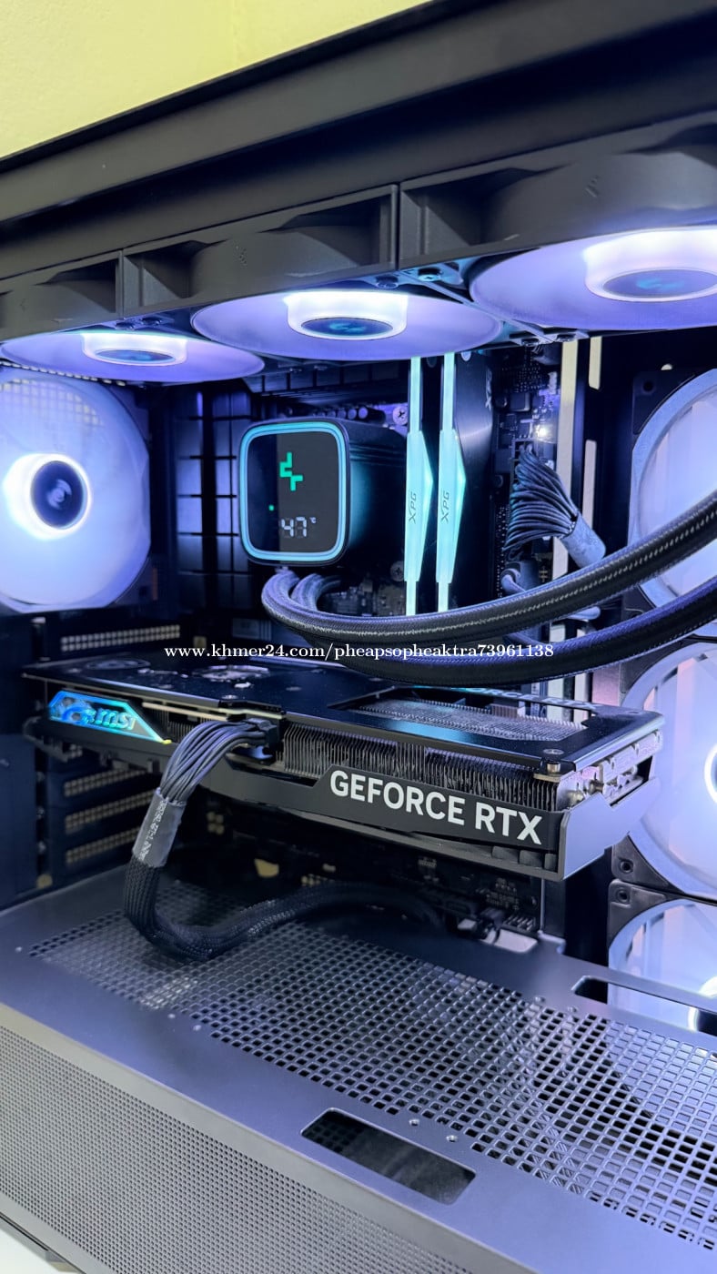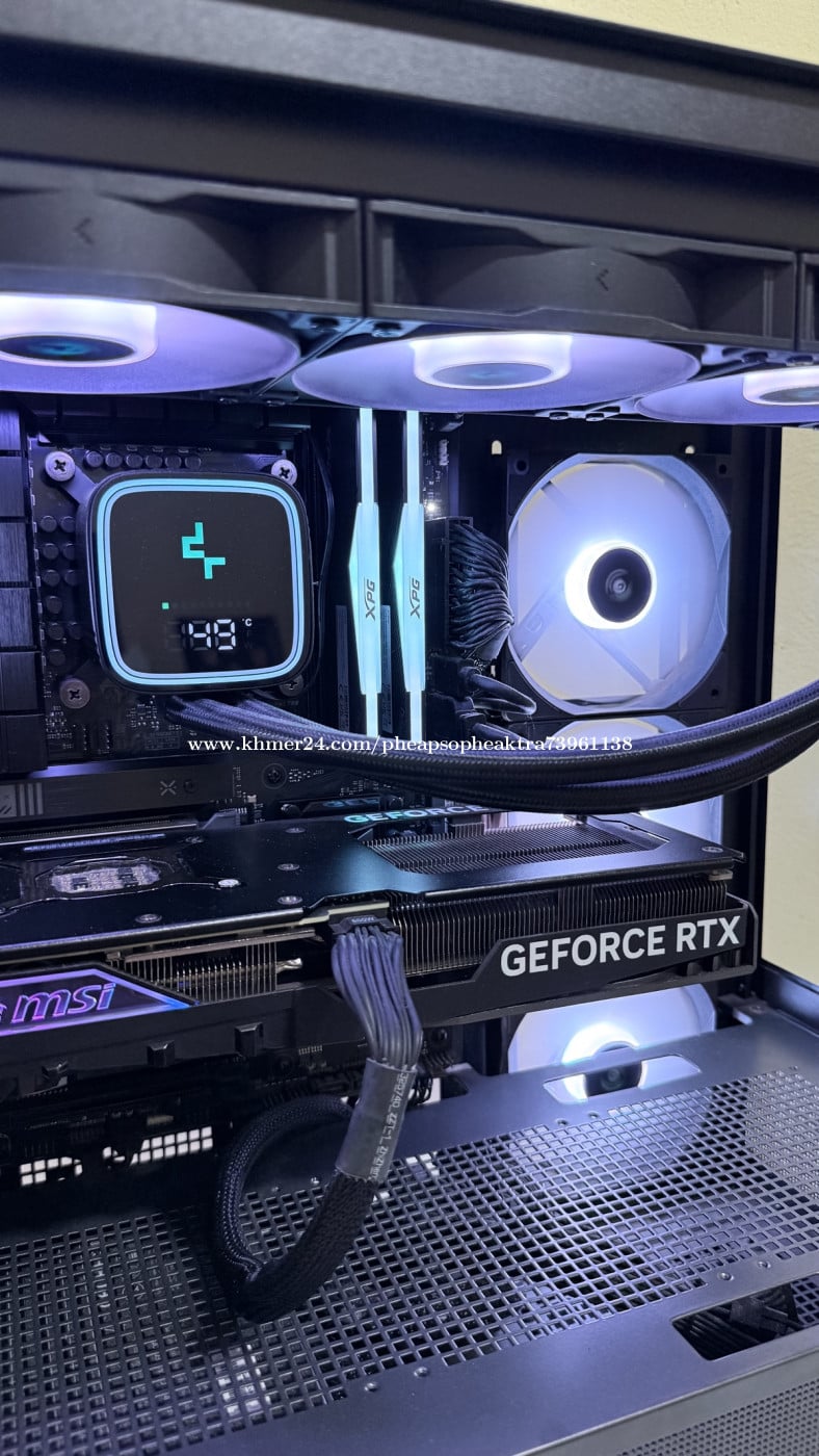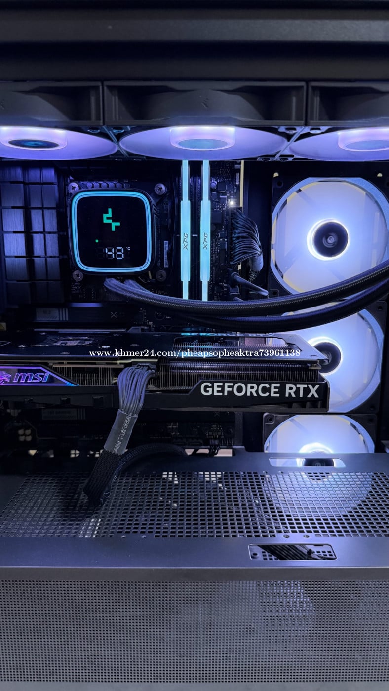 Specifications: - CPU : Intel® Core™ i9 14900K (24Cores,32Threads) - Ram : XPG LANCER RGB 32GB (16x2) - DDR5 6000Mhz - CPU Cooler : Deepcool LS720 SE Digital - Black - MB : Asus TUF GAMING B760-PLUS WIFI - GPU : MSI RTX™ 4070 SUPER 12G GAMING X SLIM - PSU :XPG Kyber 750W 80 Plus Gold - M.2 : XPG SX8200 Pro 1TB PCIe Gen 3 (R/W 3,500/3,000MB) (x2)= 2T - Case : Montech Sky Two black (4 Fans) Black White Condition: 99%New, clean build (Free Delivery in Phnom Penh)