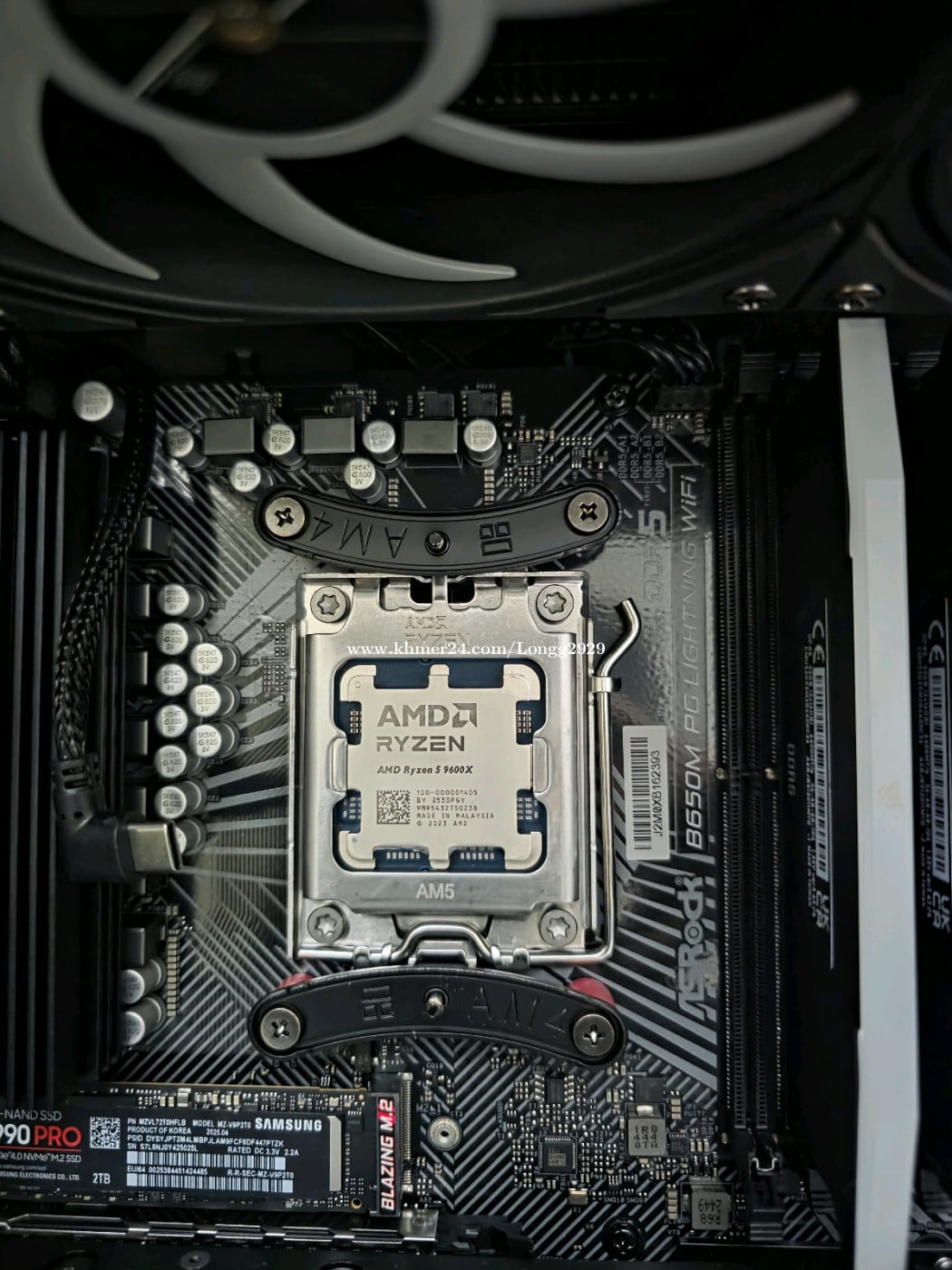 CPU: Ryzen 5 9600x ( AM5 ) Architecture: Zen 5 (Granite Ridge) Cores/Threads: 6 Cores / 12 Threads Base Clock: 3.9 GHz Max Boost Clock: Up to 5.4 GHz TDP (Thermal Design Power): 65W (configurable up to 105W in BIOS) Cache: 6 MB L2 cache, 32 MB L3 cache (38 MB total L2+L3 cache) Socket: AM5 Memory Support: DDR5-5600 native speed, with support for AMD EXPO overclocking PCI Express Version: PCIe 5.0 support Integrated Graphics: AMD Radeon Graphics (RDNA 2, 2200 MHz) Note: មួយទឹក ទើបប្រើបានមួយខែនៅដូចថ្មី Telegram: 010443xxxClick To Call