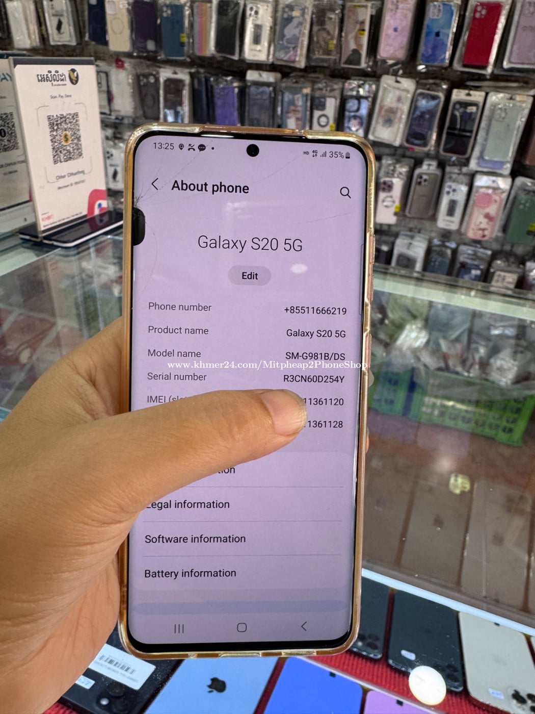 Samsung S20(5G)មួយទឹក​Ram12Rom128 ប្រេី​សុីម​បាន2