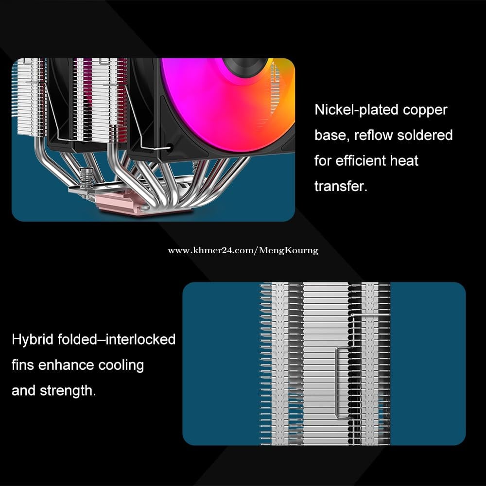 SAMA A60L Dual Tower CPU Air Cooler ✅CPU Socket: LGA1851 1700/ AM5 ✅Heat pipe size:Φ6mm*6PCS, Fan 2pcs ✅TDP :265W, Color : Silver ✅Cooler Size: 124×142.5×156.5mm ✅Fan Speed:800-2200RPM(±10%) ✅Fan Air Flow: 75.2CFM ✅Fan Air Pressure: 2.43mmH2O ✅Fan Noise Level:29dB(A) ✅Fan Connector:4Pin PWM, LED 3Pin ARGB *This price not include fan installation and delivery (បញ្ជាក់:តម្លៃនេះមិនបូករួមសេវាតម្លេីងនិងដឹកជញ្ជូននោះទេ។ ) 🛒កម្ម៉ង់ឥឡូវនេះ 👇👇👇 ផ្នែកលក់ 012787xxxClick To Call https://t.me/cmksale1 Join ⏬ Telegram 🔔 https://t.me/+pMlYdQSBYkEyYTU1 ដើម្បីទទួលបាន ព័ត៌មានថ្មីៗ លម្អិត និងការផ្តល់ជូនពិសេសៗ ពីជួម៉េងគួងកុំព្យូទ័រ 🌐cmkcomputer.com 🌐https://www.facebook.com/MengKourngComputer 🌐https://www.facebook.com/cambodiafantech