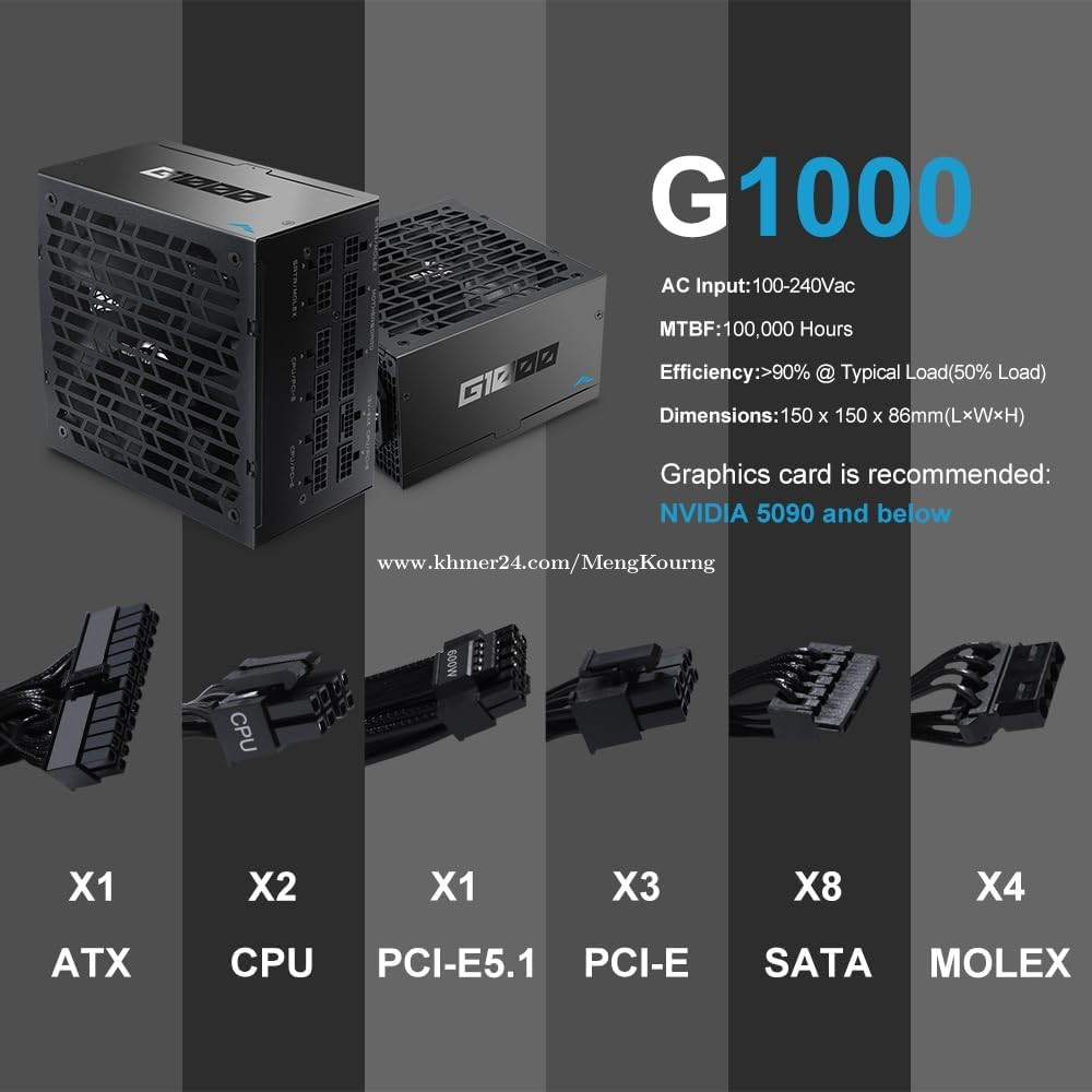 SAMA G1000 ATX3.1 1000W 80 PLUS GOLD Fully MODULAR ✅PCIe 5.1 12V - 2x6 ✅ RTX50 Series Ready – Black ✅Have 1 Warranty 👉(បញ្ជាក់ :តម្លៃ នេះមិនបូករួមសេវាតម្លេីងអោយនោះទេ) *This price not include delivery 🛒កម្ម៉ង់ឥឡូវនេះ 👇👇👇 ផ្នែកលក់ https://t.me/cmksale1 Join ⏬ Telegram 🔔 https://t.me/+pMlYdQSBYkEyYTU1 ដើម្បីទទួលបាន ព័ត៌មានថ្មីៗ លម្អិត និងការផ្តល់ជូនពិសេសៗ ពីជួម៉េងគួងកុំព្យូទ័រ