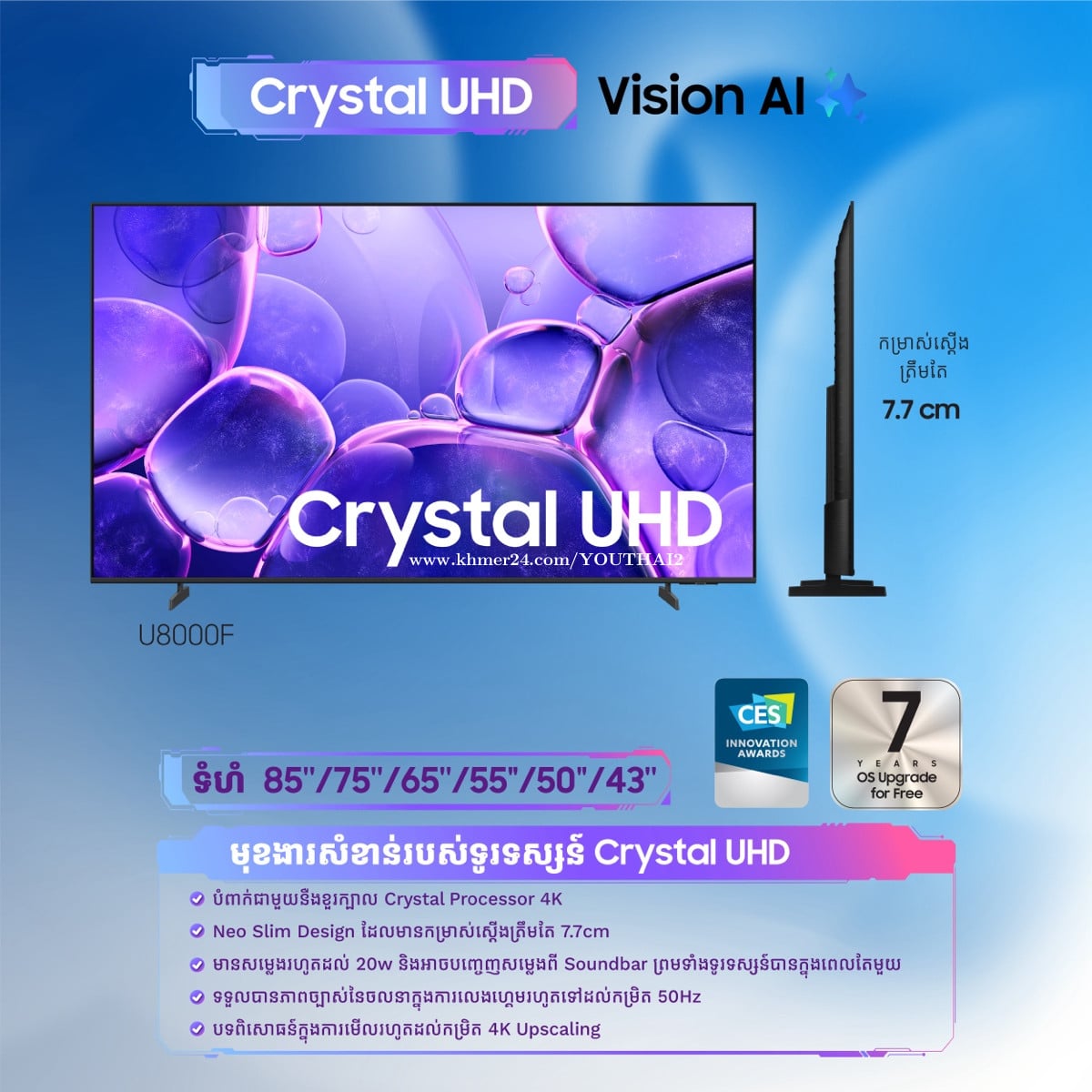 Samsung 75”U8000 crystal UHD4k 810$ Version AI ផលិតផលសុទ្ធពីក្រុមហ៊ុន និងមានការធានា1ឆ្នាំផងដែរ 077778xxxClick To Call / 086778xxxClick To Call Link telegram https://t.me/YouThaiShop