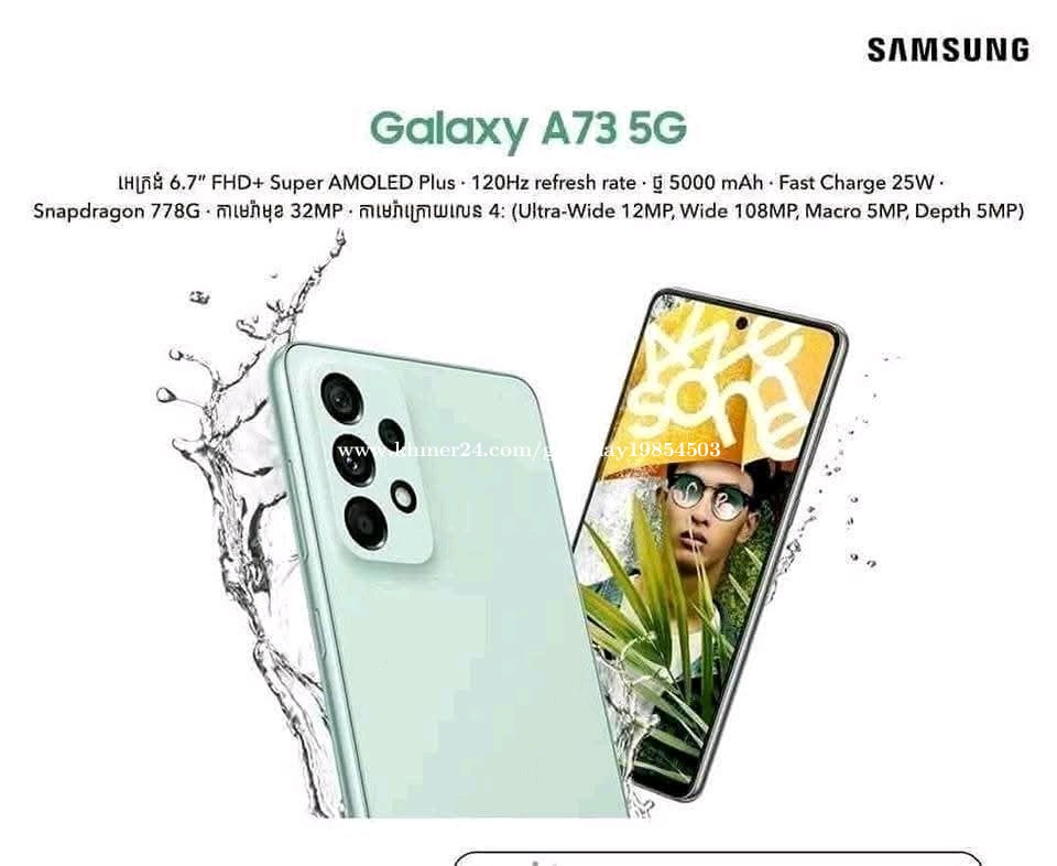 Samsung A73 5G ក្រុមហ៊ុន Sim2 128GB Ram8+8 សុីនសុំណុំ ស្អាត99% អេក្រង់ធំ ម៉ាស៊ីនល្អ ថ្មកាន់ ស្កេនមុខ ស្កេនក្រយៅដៃ