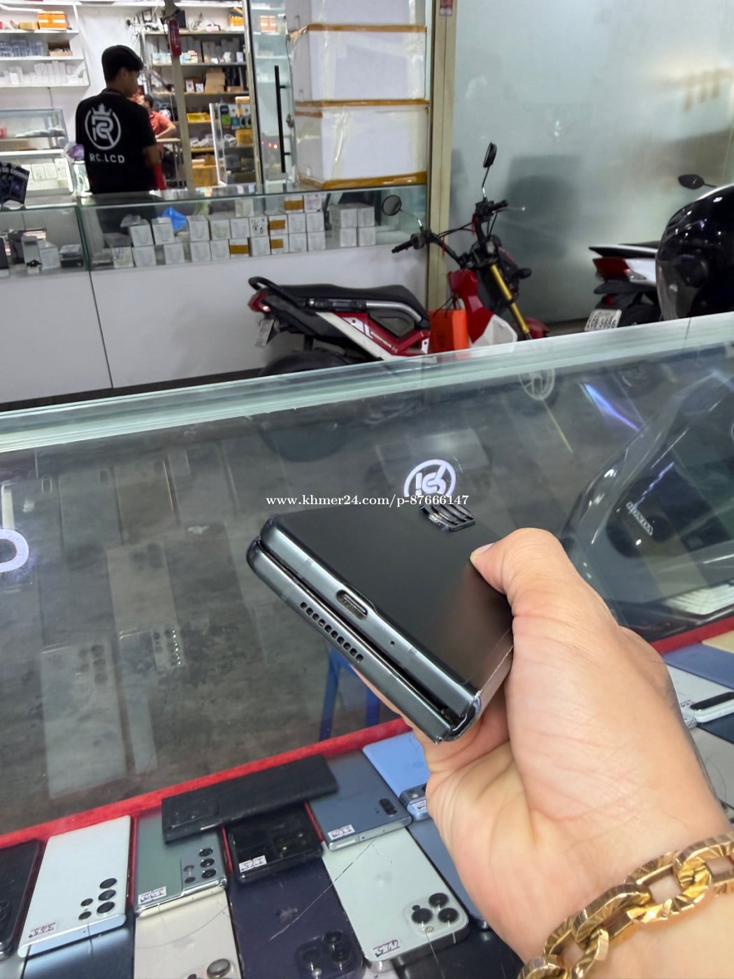 Samsung Fold 3 Company Sim2 Ram12G HD256GB Phone Condition 96% , ទាក់ថាច់អេក្រង់ក្រៅបន្តិច , អេក្រង់ក្នុងស្អាត