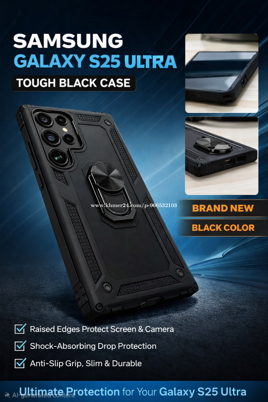 Samsung Galaxy S25 Ultra Case - Color: Black - Condition: Brand New - Raised edges protect screen & camera - Shock-absorbing drop protection - Anti-slip grip, slim & durable - Quantity = 1 - Please contact me through telegram.