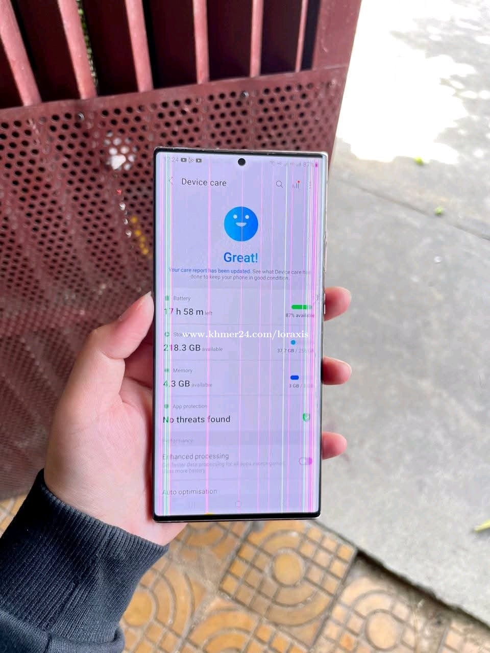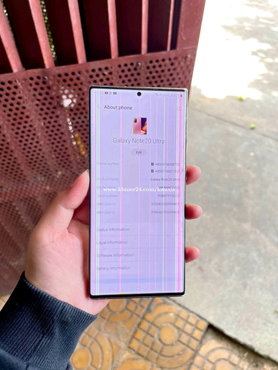 Samsung Note20 Ultra Ram8.00GB 256G អេក្រង់សុីនបែកនិងឆ្នូតដូចសុីម2 ក្រុមហ៊ុនចំ បែកខ្នងក្រោយ cameraច្បាស់មុខក្រោយ