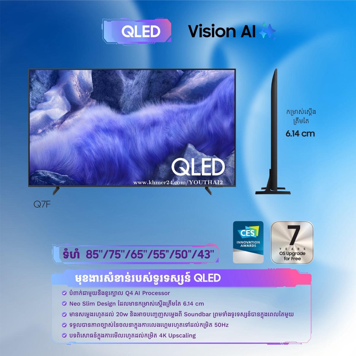 Samsung QLED 55” Q7F crystal UHD 420$ Version AI អាចមើលទូរទស្សន៏ តាមអនឡានបាន (មិនចាំបាច់ប្រើអង់តែន រឺ ខ្សែរកាប) ធានា១ឆ្នាំ 077778xxxClick To Call / 086778xxxClick To Call Link telegram https://t.me/YouThaiShop