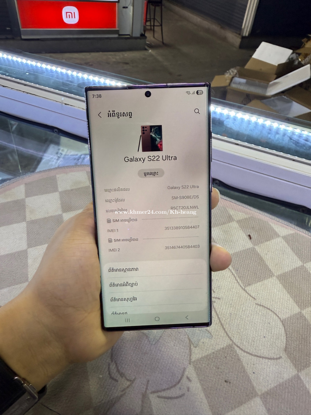 Samsung S22ultra Storage 512G ក្រុមហ៊ុន sim2 មានអក្សរខ្មែរ ធានានៅដូចថ្មិ 100%