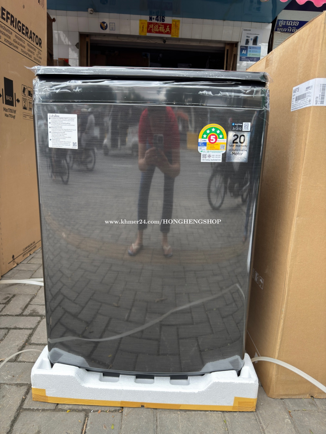 -មានលក់នៅហាង ហុងហេង# 416Eo,st.274( Hong Heng Electronic Shop) -Tel : 099771xxxClick To Call, 069771xxxClick To Call( Line) 0888896xxxClick To Call (Telegram) 011734xxxClick To Call ( Line, viber &We chat) FB : Hong Heng Electronic Shop . -ម៉ាស៊ីនបោកគក់ថ្មីចំណុះ17kg ដែលមានប្រព័ន្ធបំបែកសាប៊ូបាននិងបោកបានស្អាត។ -New washing machine 17Kg wobble inverter. -មានធានារយះពេល 1ឆ្នាំលើគ្រឿងបន្លាស់និងសេវាជួសជុល។ -1 year warranty on repairing service and spare parts.