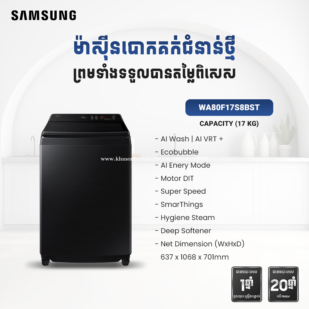 SAMSUNG WA80F17S8( ម៉ាស៊ីនបោកគក់ចំណុះ17Kg/new washing 17Kg )