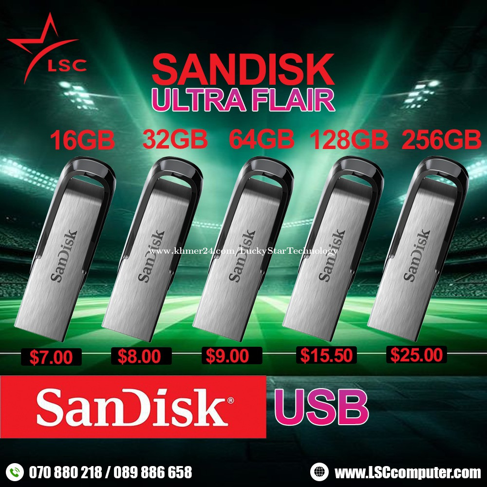 - Sandisk Ultra Flair 16GB = $7 - Sandisk Ultra Flair 32GB = $8 - Sandisk Ultra Flair 64GB = $9 - Sandisk Ultra Flair 128GB = $15 - Sandisk Ultra Flair 256GB = $25