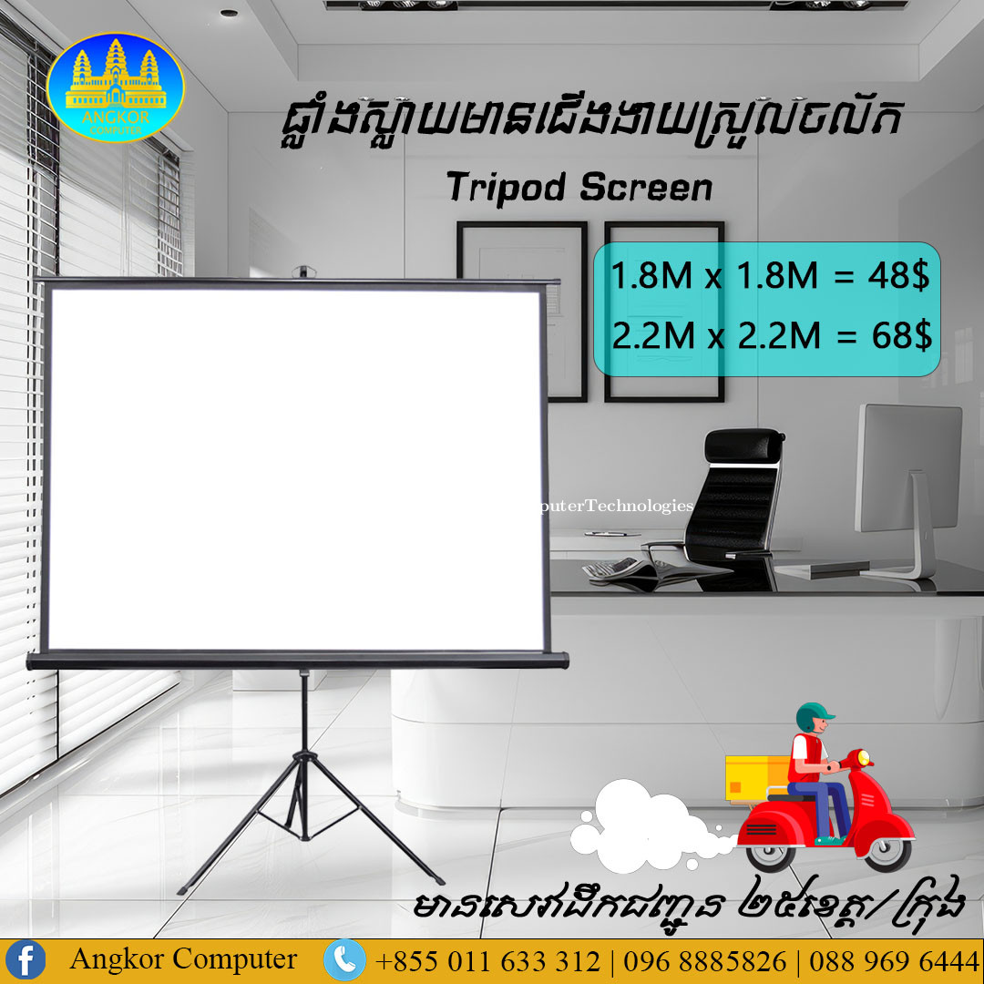 Screen LCD Projector Tripod 1.8m $48 អាស័យដ្ឋាន : ផ្ទះលេខ62Eoផ្លូវ 217 ( វិថីហ្សាដឺហ្គោល) កែងនិងផ្លូវ107 ( ផ្លូវសុខហុកអូឬស្សី) ☎️ 011633xxxClick To Call / 0889696xxxClick To Call / 0968885xxxClick To Call https://maps.app.goo.gl/H2V83cjDn3WXQjJD8 https://t.me/Angkor_Computer