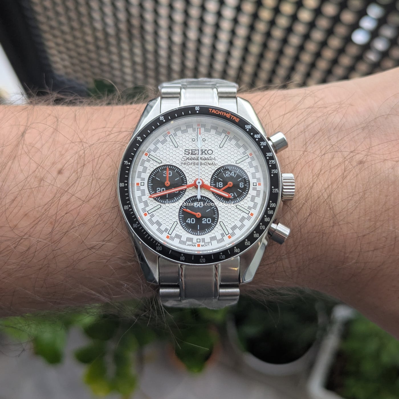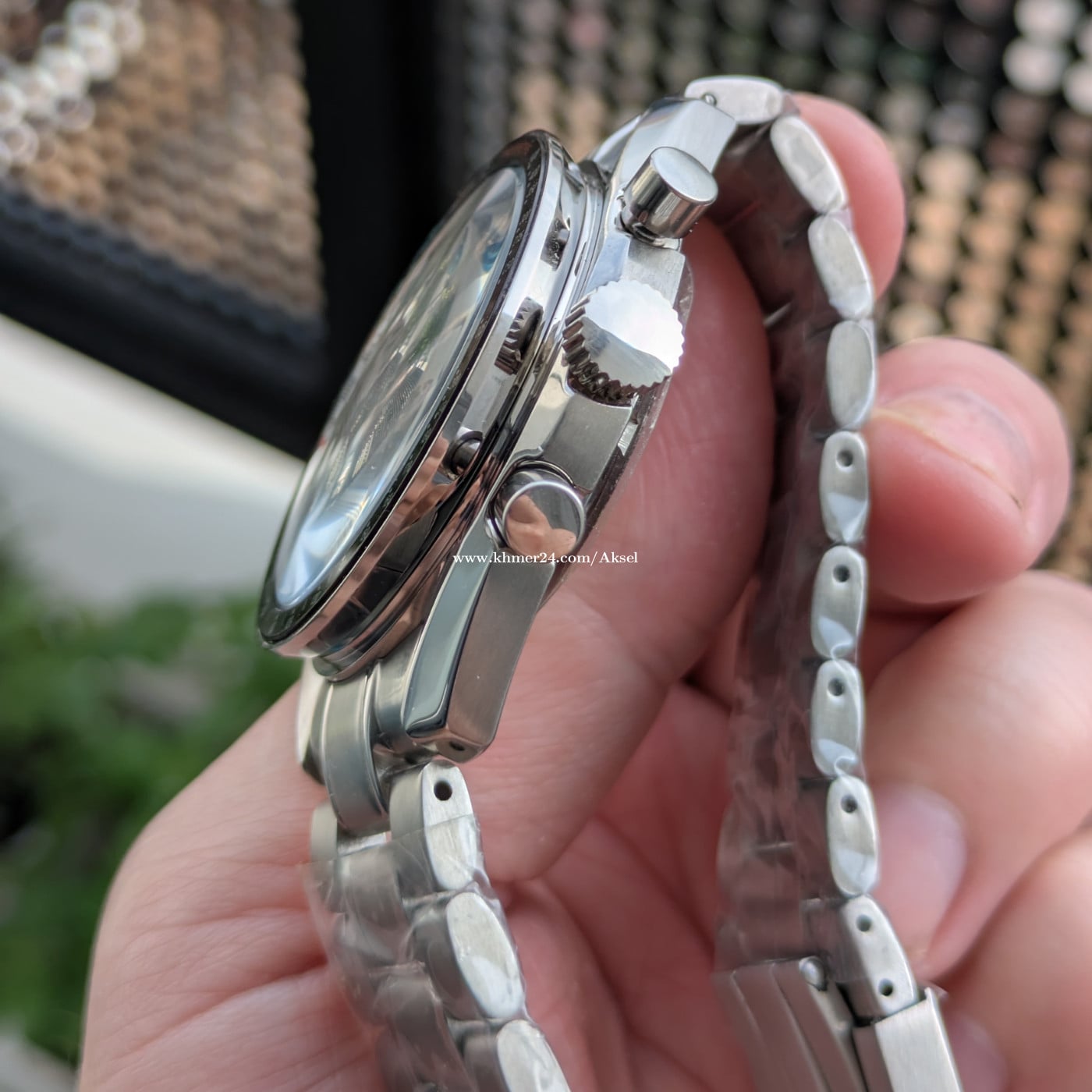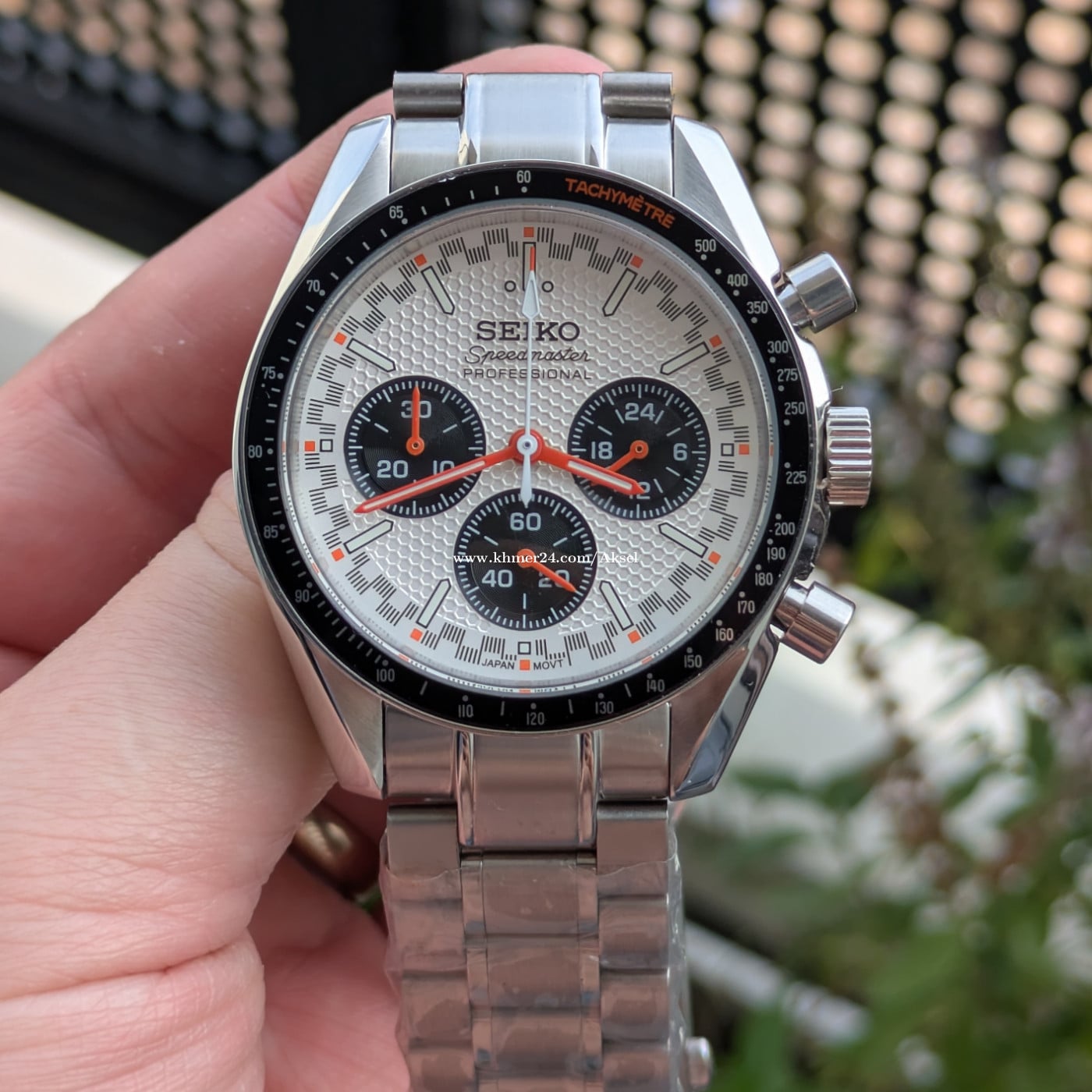 Seiko speedmaster mod, new, Case size: 39.7mm, thickness: 15mm, Screw down crown. Movement: Seiko Vk63 Mecha Quartz Good to know: Left sub-dial show 30 min but is actually 60 min per revolution. Small dent on bezel insert, see picture. Feel free to message me on Telegram and i can send video/more pictures.