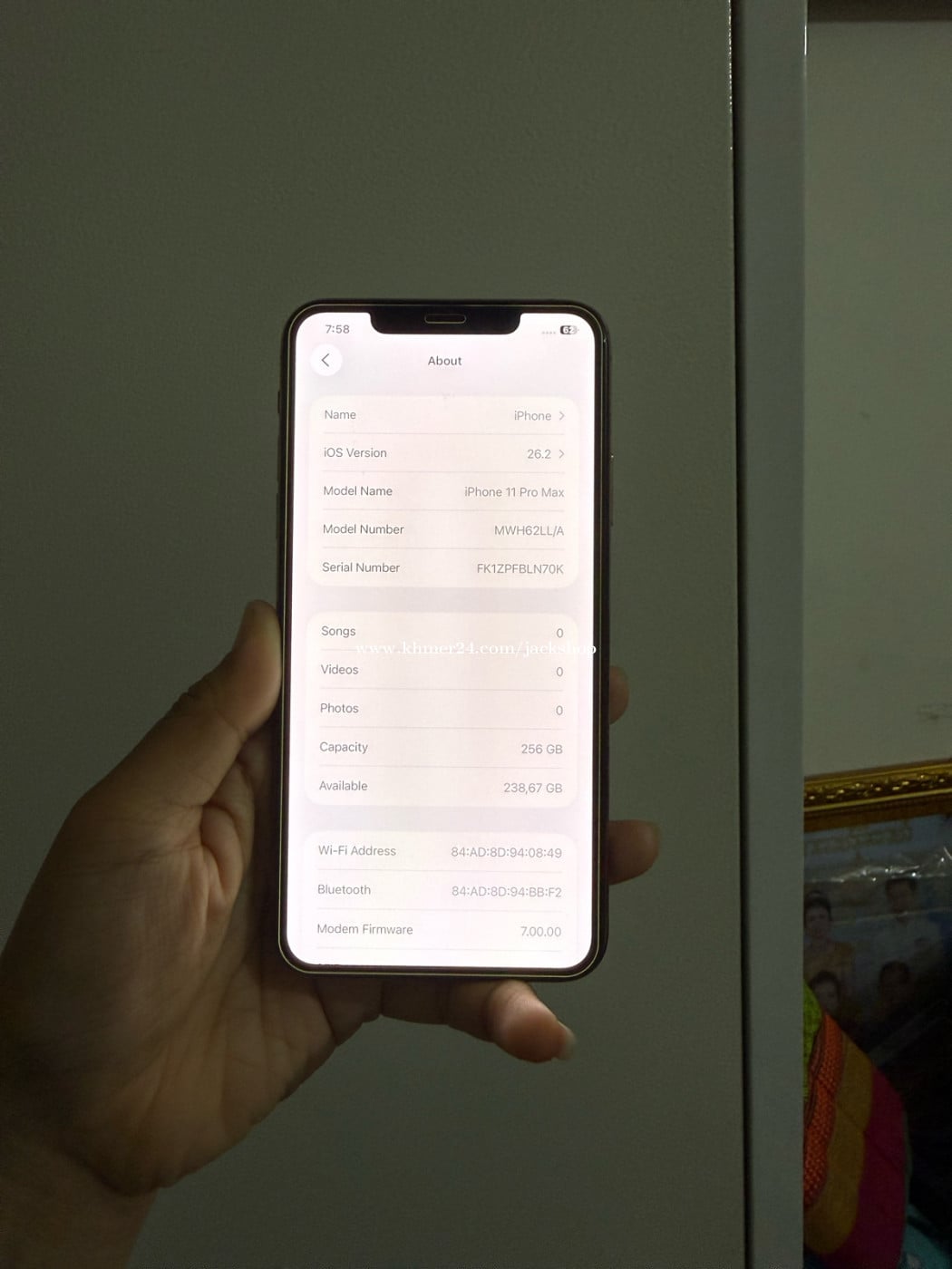 iPhone 11pro max 256g Sim1+Esim Scan 98% ធានាទូរស័ព្ទនឹងម៉ាសុីនសុំនុំហ្សុីន មិនដែរដោះមិនដែរជួសជុល ថ្មកាន់ កាំមេរ៉ាច្បាស់មុខក្រោយ ធានាលើការប្រើប្រាស់15ថ្ងៃ(only phone)0969000xxxClick To Call telegram