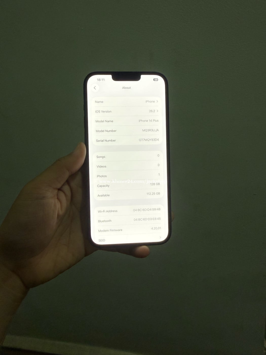 iPhone 14 Plus 128g LL/A Esim2 Scan 98% ធានាទូរស័ព្ទនឹងម៉ាសុីនសុំនុំហ្សុីនណែន100% មិនដែរដោះមិនដែរជួសជុល (មួយទឹកក្រៅស្រុក) ថ្មកាន់ កាំមេរ៉ាច្បាស់មុខក្រោយ ធានាលើការប្រើប្រាស់15ថ្ងៃ(only phone)0969000xxxClick To Call telegram