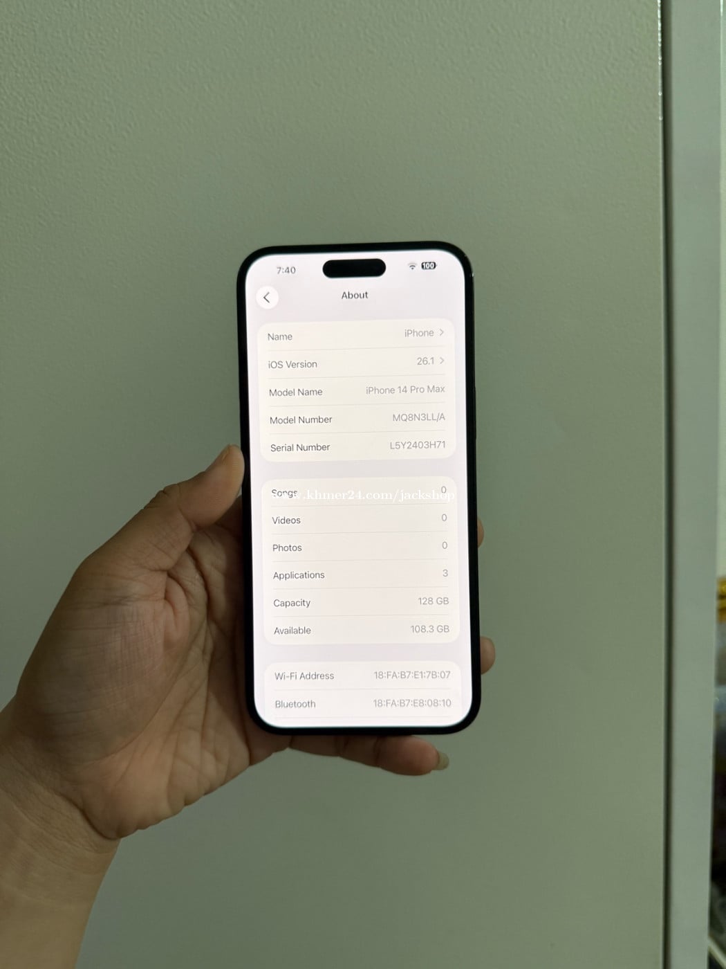 iPhone 14pro max 128g LL/A Scan 98.9% ធានាទូរស័ព្ទនឹងម៉ាសុីនសុំនុំហ្សុីនណែន100% មិនដែរដោះមិនដែរជួសជុល ថ្មកាន់ កាំមេរ៉ាច្បាស់មុខក្រោយ ធានាលើការប្រើប្រាស់15ថ្ងៃ(only phone)0969000xxxClick To Call telegram (បញ្ចាក់: Bypass WiFi)