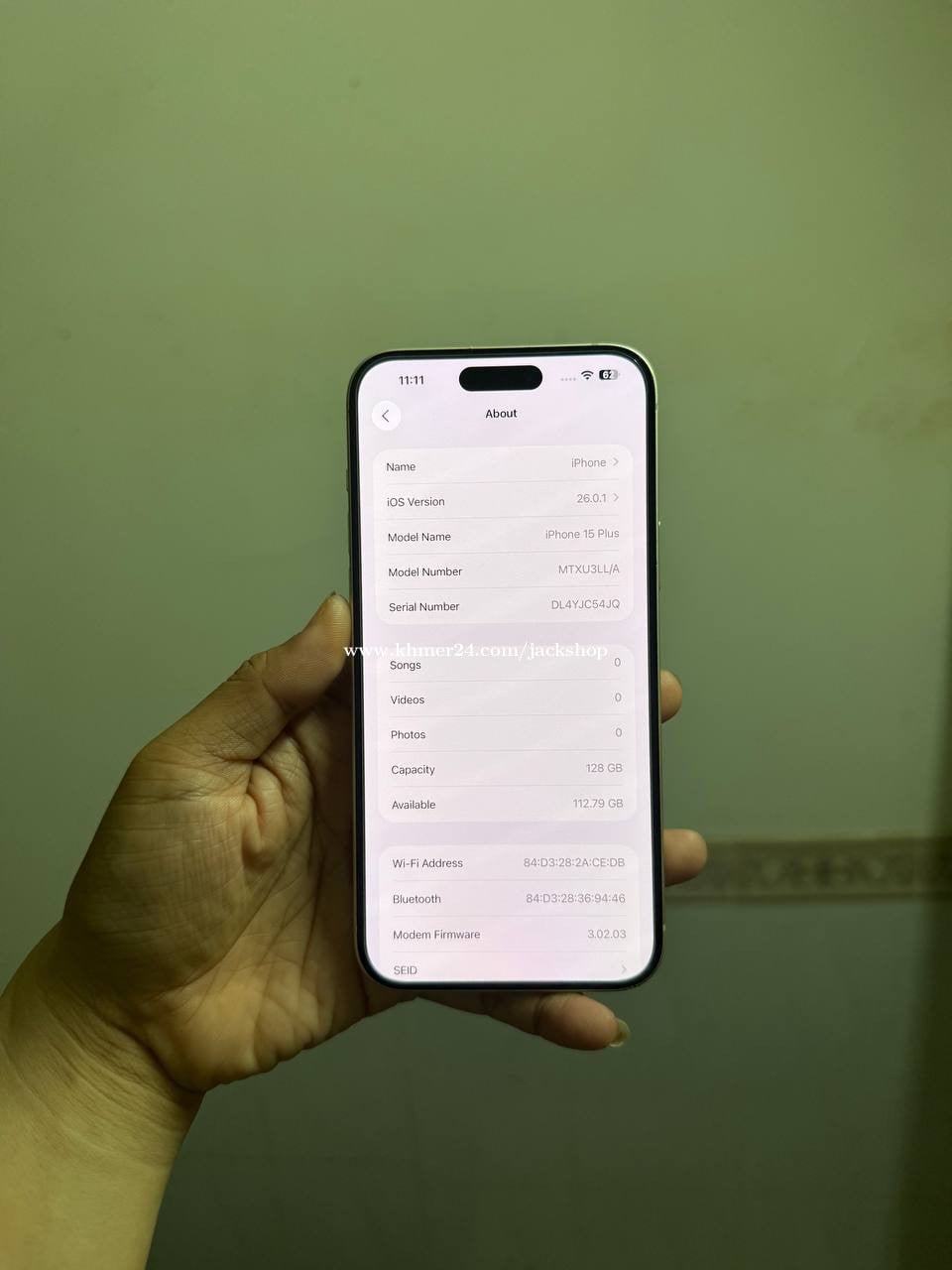 iPhone 15plus 128g Sim1+Esim Scan 97.5% ធានាទូរស័ព្ទសុំនុំហ្សុីនណែន100% Freeផ្លុំ ថ្មកាន់ កាំមេរ៉ាច្បាស់មុខក្រោយ ធានាលើការប្រើប្រាស់15ថ្ងៃ(only phone) 0969000xxxClick To Call telegram (បញ្ចាក់: ប្រើត្រនាប់សុីមអាចដាក់បានគ្រប់ប្រព័ន្ធ ធានាសេវាខ្លាំង Internet លឿនកប់ មានFree ត្រនាប់)