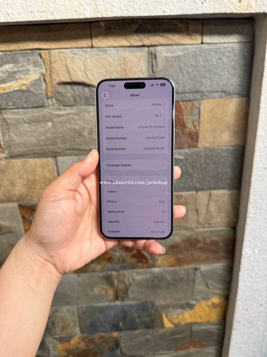 iPhone 15pro max 256g Za Sim2 Scan 99% ធានាទូរស័ព្ទនឹងម៉ាសុីនសុំនុំហ្សុីន100% មិនដែរដោះមិនដែរជួសជុល ថ្មកាន់ កាំមេរ៉ាច្បាស់មុខក្រោយ ធានាលើការប្រើប្រាស់15ថ្ងៃ(only phone)0969000xxxClick To Call telegram (បញ្ចាក់: ប្រើសុីមដាច់សេវាម្ដងមានម្ដងដាច់ អាចយកអោយជាងជួសជុលបាន បើWiFiប្រើបានធម្មតា)