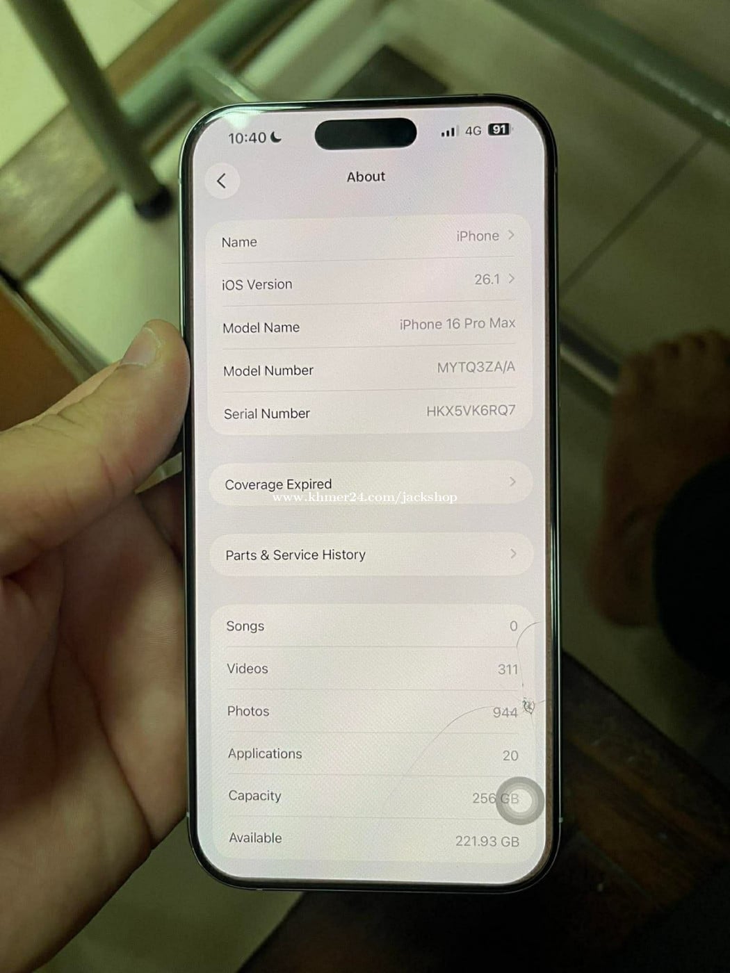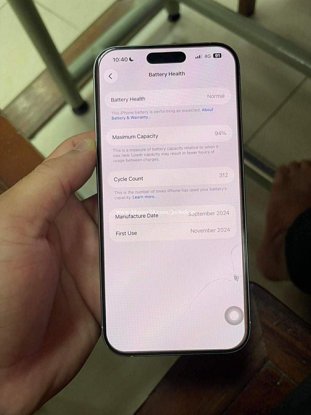 iPhone 16pro max 256g Sim2 Scan 98% ធ្លាប់ដូរអេក្រង់ តែដាក់អេក្រង់ហ្សុីនវិញ ធានាទូរស័ព្ទនិងម៉ាសុីនសុំនុំហ្សុីនមិនដែរជួសជុល ថ្មកាន់ កាំមេរ៉ាច្បាស់មុខក្រោយ ធានាលើការប្រើប្រាស់15ថ្ងៃ(only phone) 0969000xxxClick To Call telegram