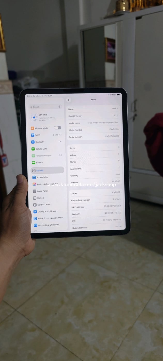 iPad pro M2 (11-inch) 128g X/A Sim+WiFi Scan 99.9% ធានាipadសុំនុំហ្សុីនណែន100% ថ្ម100% នៅសល់ធានា11ខែ (Only iPad) 0969000xxxClick To Call telegram ទើបទិញមកមិនទាន់បាន1ខែទេ