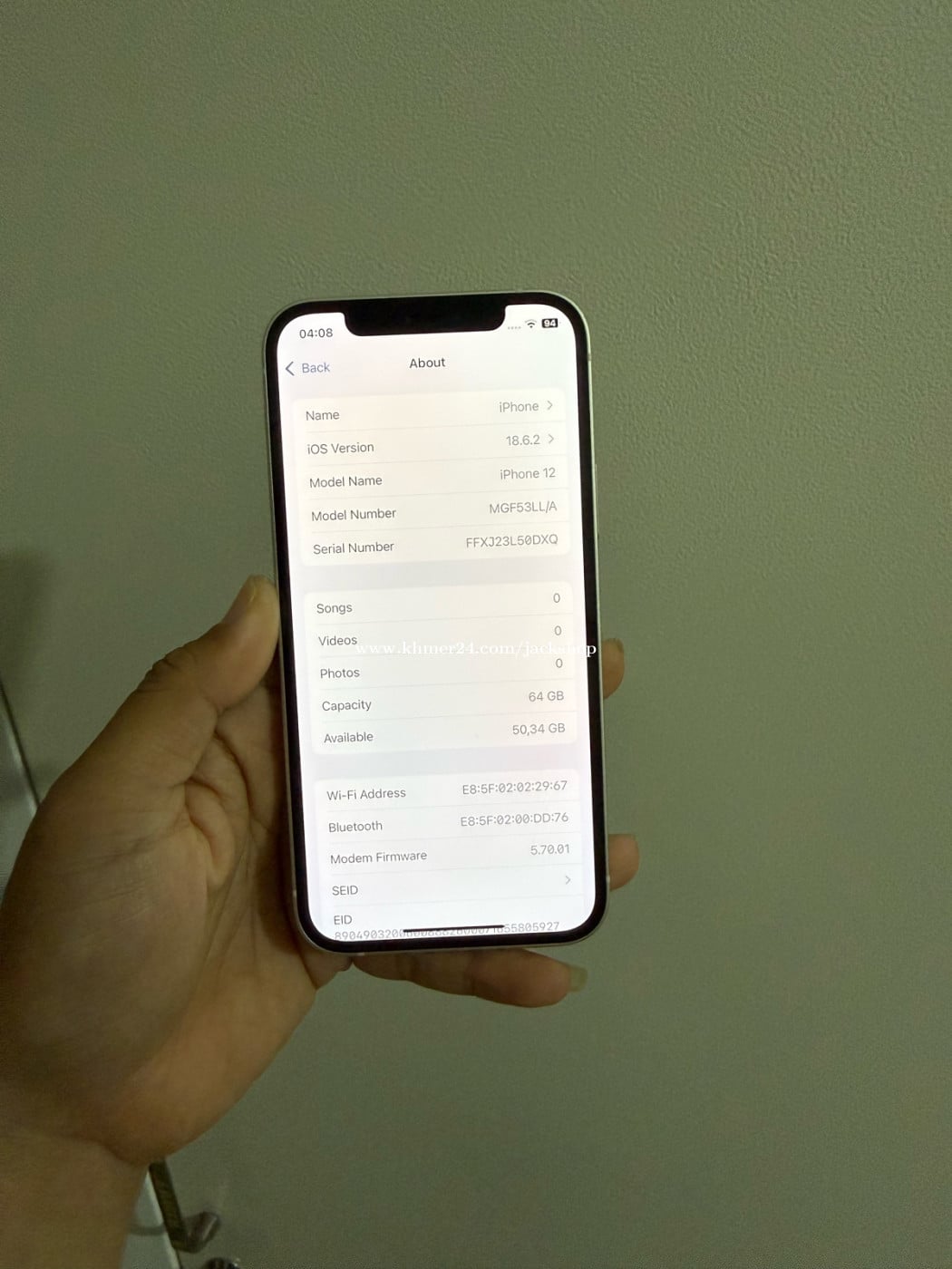 iPhone 12 64g Sim1+Esim Scan 98.9% ធានាទូរស័ព្ទនឹងម៉ាសុីនសុំនុំហ្សុីន100% មិនដែរដោះមិនដែរជួសជុល ថ្មកាន់ កាំមេរ៉ាច្បាស់មុខក្រោយ ធានាលើការប្រើប្រាស់15ថ្ងៃ(only phone)0969000xxxClick To Call telegram