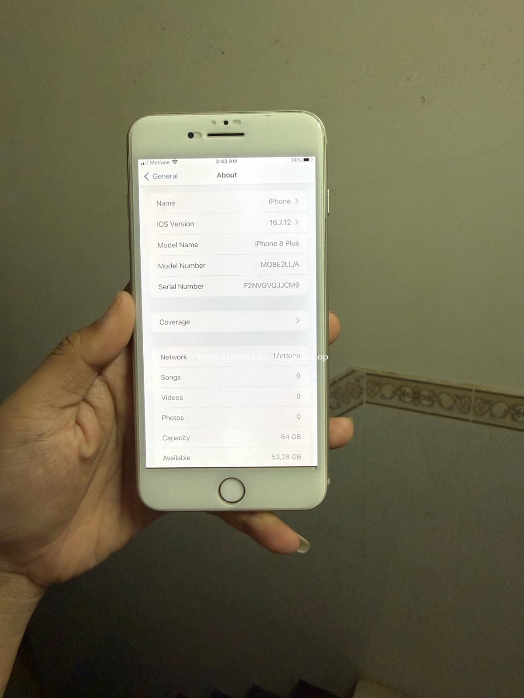 iPhone 8 Plus 64g LL/A Scan 97% ធានាទូរស័ព្ទនឹងម៉ាសុីនសុំនុំហ្សុីន មិនដែរដោះមិនដែរជួសជុល ថ្មកាន់ កាំមេរ៉ាច្បាស់មុខក្រោយ ធានាលើការប្រើប្រាស់15ថ្ងៃ(only phone)0969000xxxClick To Call telegram