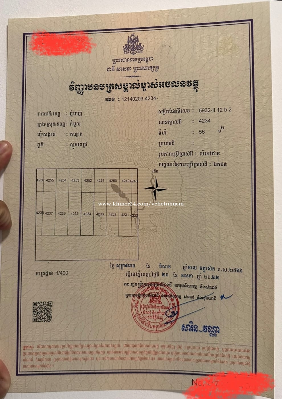 Sell urgent house 56m2 Piphup Thmey kambol, 100m from borey kambol 3 market.