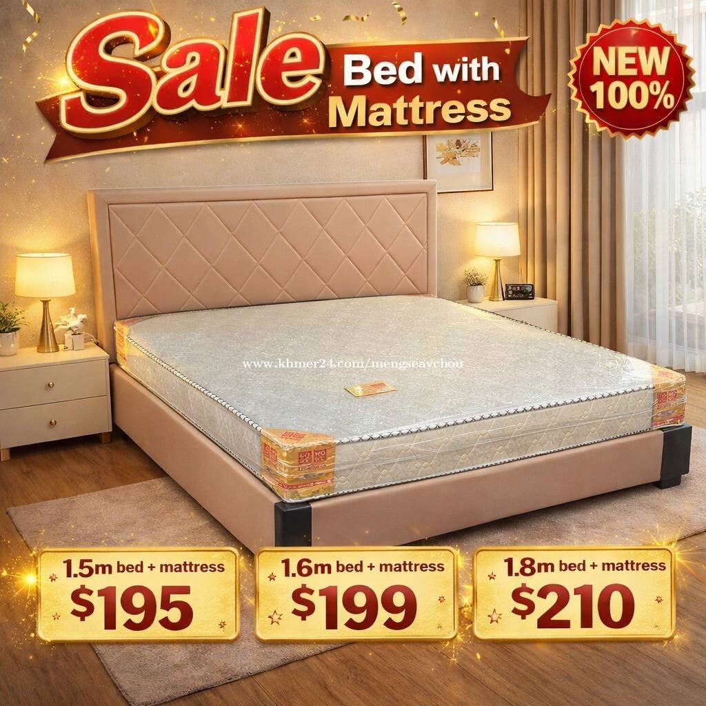 Set Bed with mattress 1.5m bed + mattress 195$ 1.6m bed + mattress 199$ 1.8m bed + mattress 210$ Modern Simple White Cream Wooden Bed Solid Wind Single and Double Storage for Household Princess Bedroom for Wedding Bed - Contact us :086564xxxClick To Call ( smart ) - interested: https://t.me/jingjing2110 - free delivery set up and free delivery in Phnom Penh city -new 100% -order now delivery today