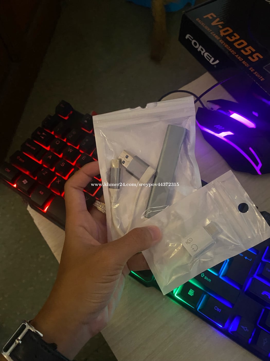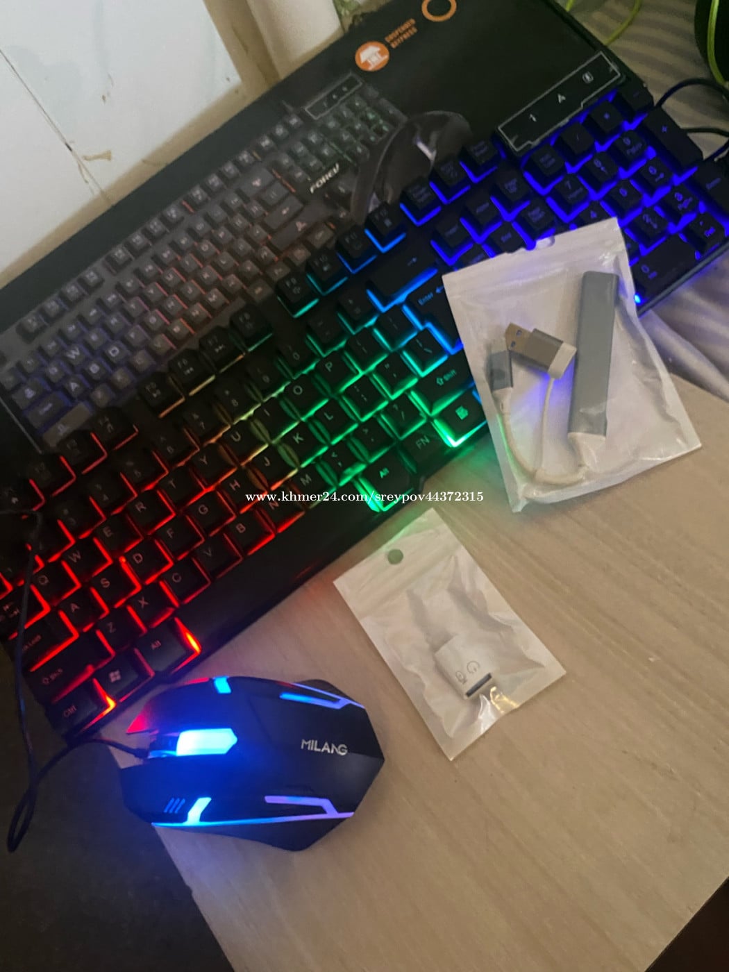 set keyboard +mouse RGB 25$ មានដូចជា 📌keyboard mouse RGB 📌adapter type-c to USB 📌adapter USB to Iphone