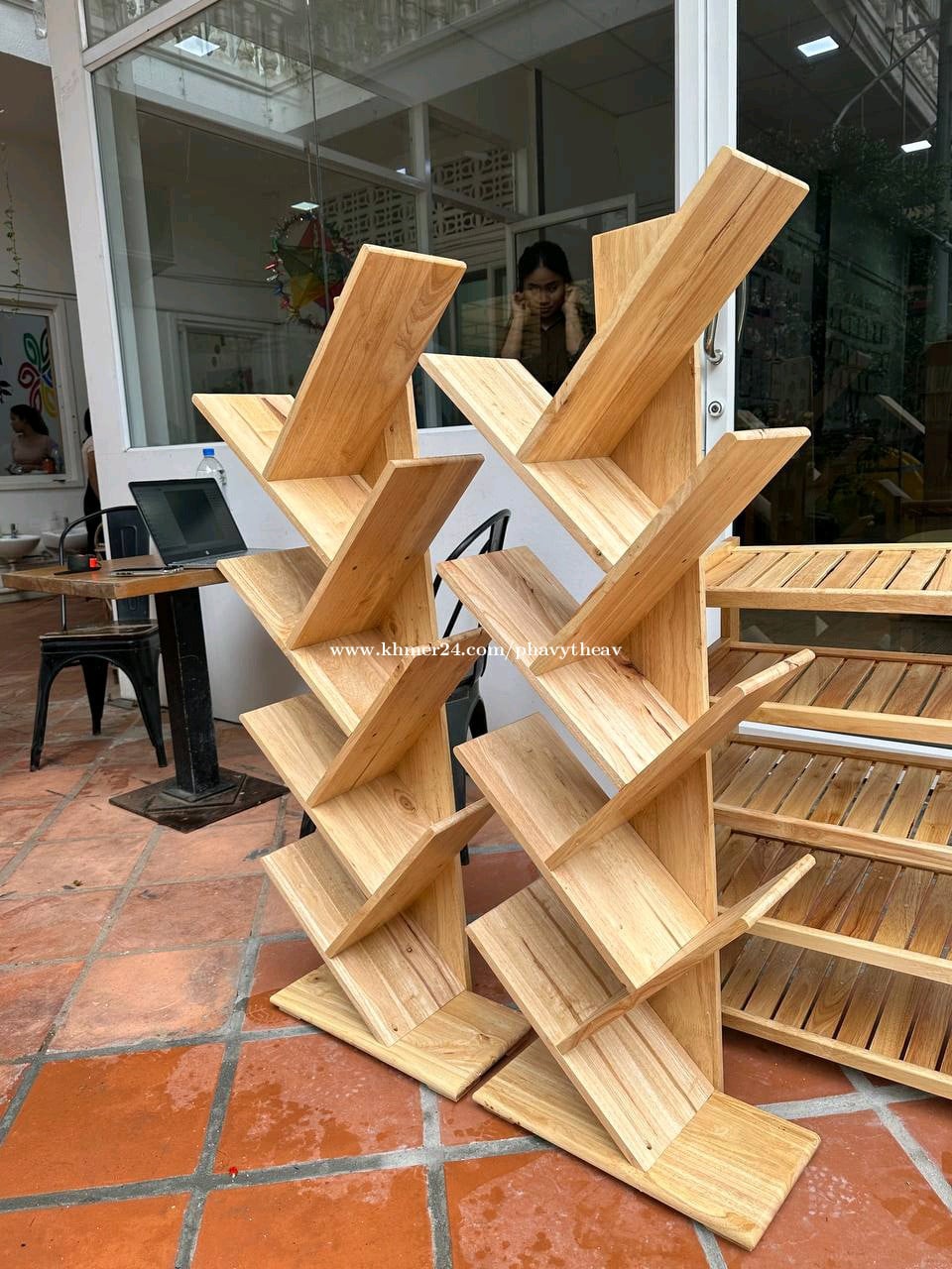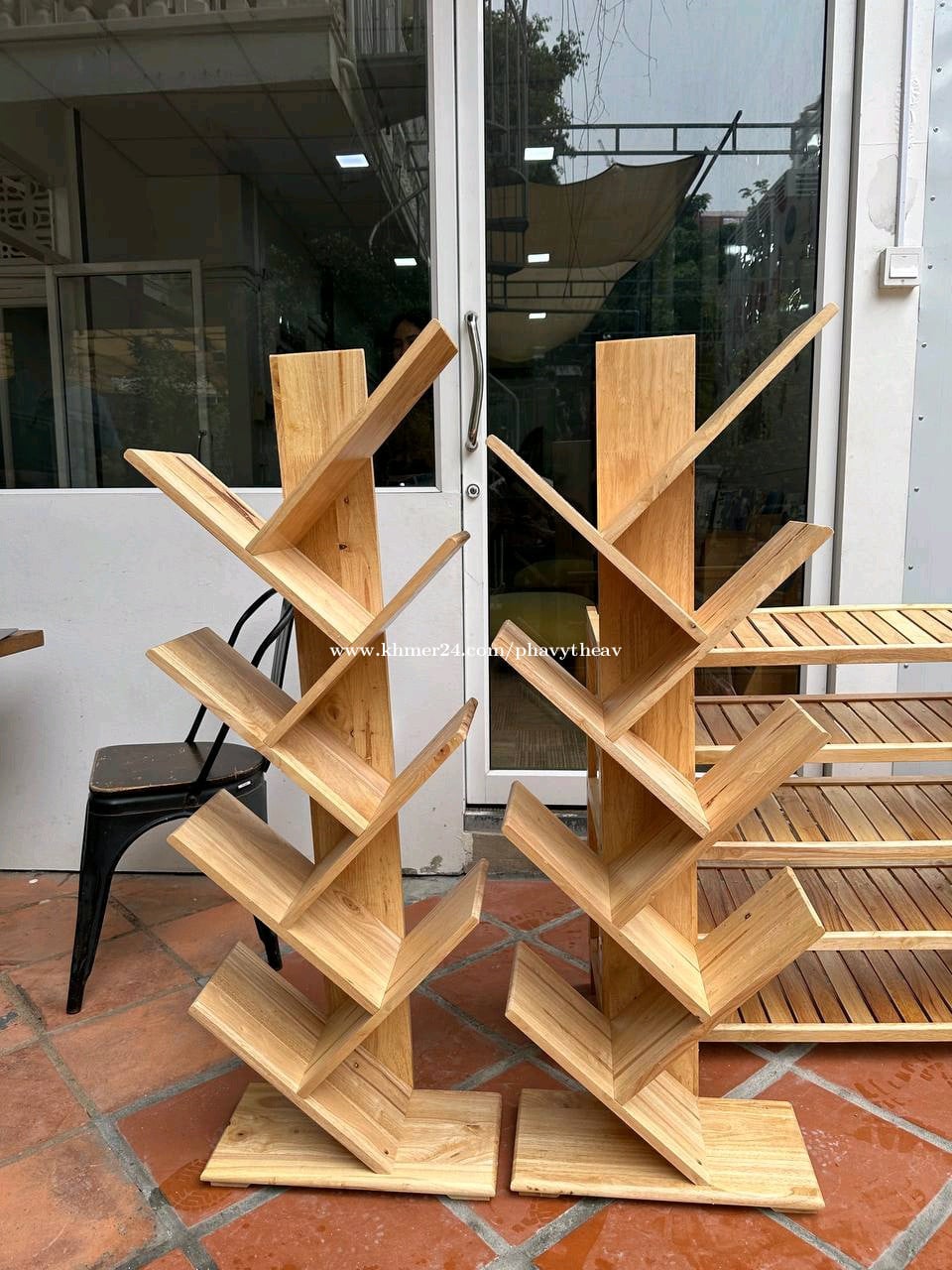Shelf book reading vertical bookshelf school bookshelfs wooden tree bookshelf -Height 100cm = 24$ -Height 122cm = 27$ -Contact us : 0968911xxxClick To Call ( telegram ) - interested kindly contact: https://t.me/phavytheav168 join our channel : https://t.me/Homefurniture1168