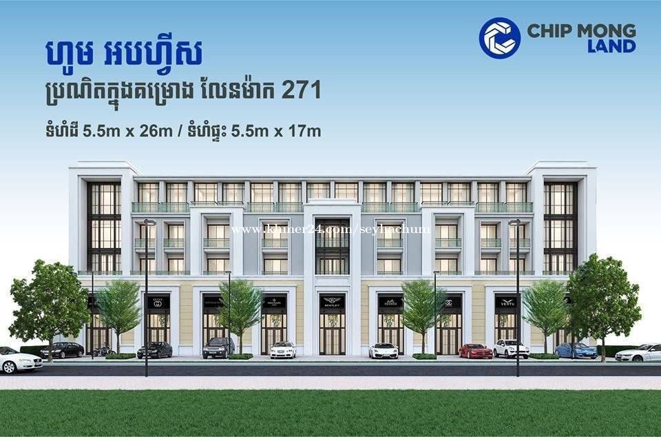 Shophouse Chipmong St 271 for rent ទីតាំងល្អទាំងសម្រាប់រស់នៅនឹងប្រកបអាជីវកម្ម