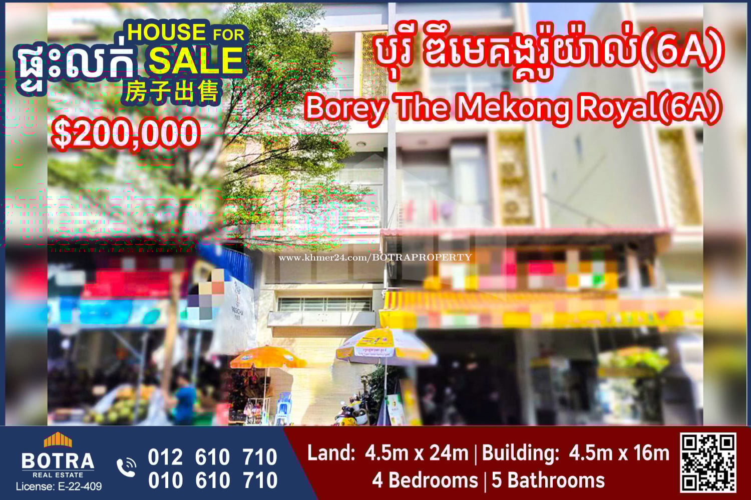 ๐ก Shophouse for Sale #P1302 ๐ Borey The Mekong Royal(6A) - Land Size: 4.5m x 24m - House Size: 4.5m x 16m - 4 Bedrooms | 5 Bathrooms ๐ Price: $200,000 (Nego) โโโโโโโโโ Contact us now ๐ 012610xxxClick To Call (Cellcard) ๐ 010610xxxClick To Call (Smart) โถ๏ธ t.me/BotraRealEstate (Chat)