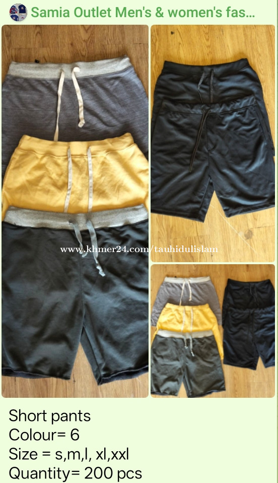 Short pants Colour= 6 Size = s,m,l, xl,xxl Quantity= 200 pcs