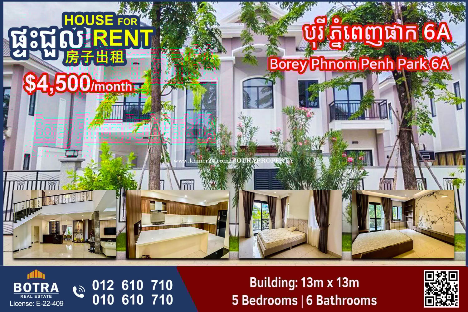 ๐ก Single Villa for Rent #P1363 ๐ Borey Phnom Penh Park 6A ๐ Price: $4,500/month (nego) - Villa size: 13m x 13m - 5 Bedrooms | 6 Bathrooms - Fully furnished โโโโโโโโโ Contact us now ๐ 012610xxxClick To Call (Cellcard) ๐ 010610xxxClick To Call (Smart) โถ๏ธ t.me/BotraRealEstate (Chat)