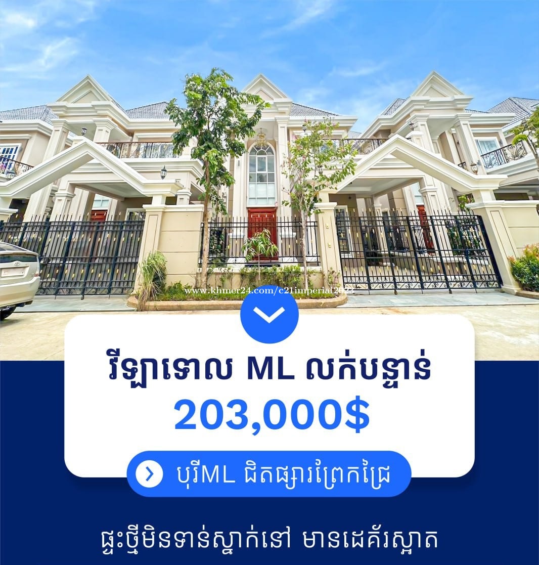 វីឡា ML សម្រាប់លក់ក្នុង (បុរីML ព្រែកជ្រៃ) Single villa for sale at borey ML prek chrey ✅ផ្ទះមានដេគ័រស្អាត ✅តម្លៃលក់ : $203,000 Selling price ✅បន្ទប់គេង : 4 Bedroom ✅បន្ទប់ទឹក : 4 Bathroom ✅ទំហំដី : 11m x 21m Size land ✅ទំហំផ្ទះ : 8m x 12m Size house •Telegram 0965601xxxClick To Call📲 •Call 085222xxxClick To Call🤙📲