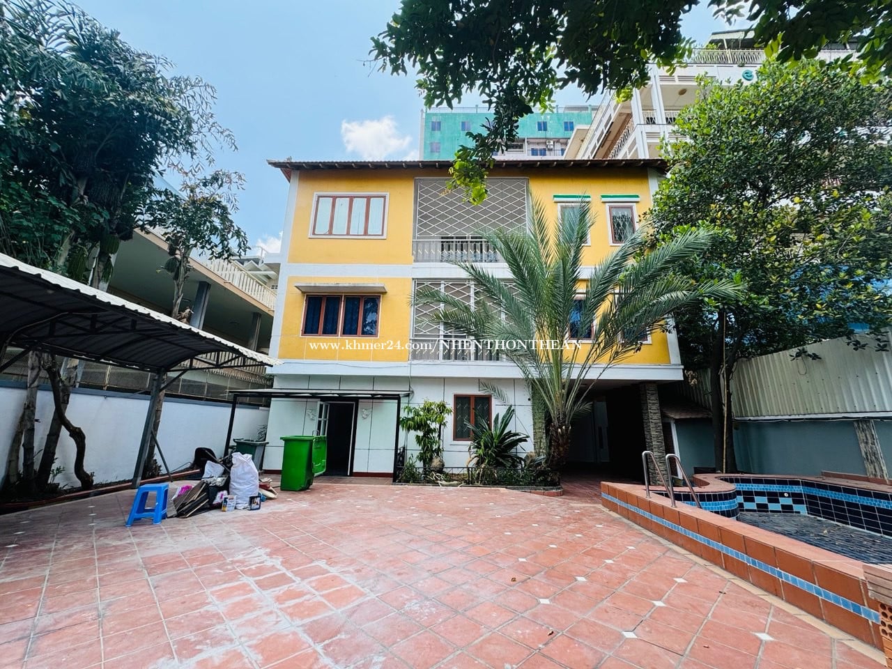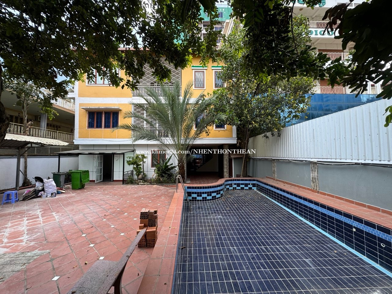 Small Building For Rent in Doun Penh Price: $6000 per month Bedroom:10 Bathroom:12 Furniture: some Parking around 5 cars Small pool.