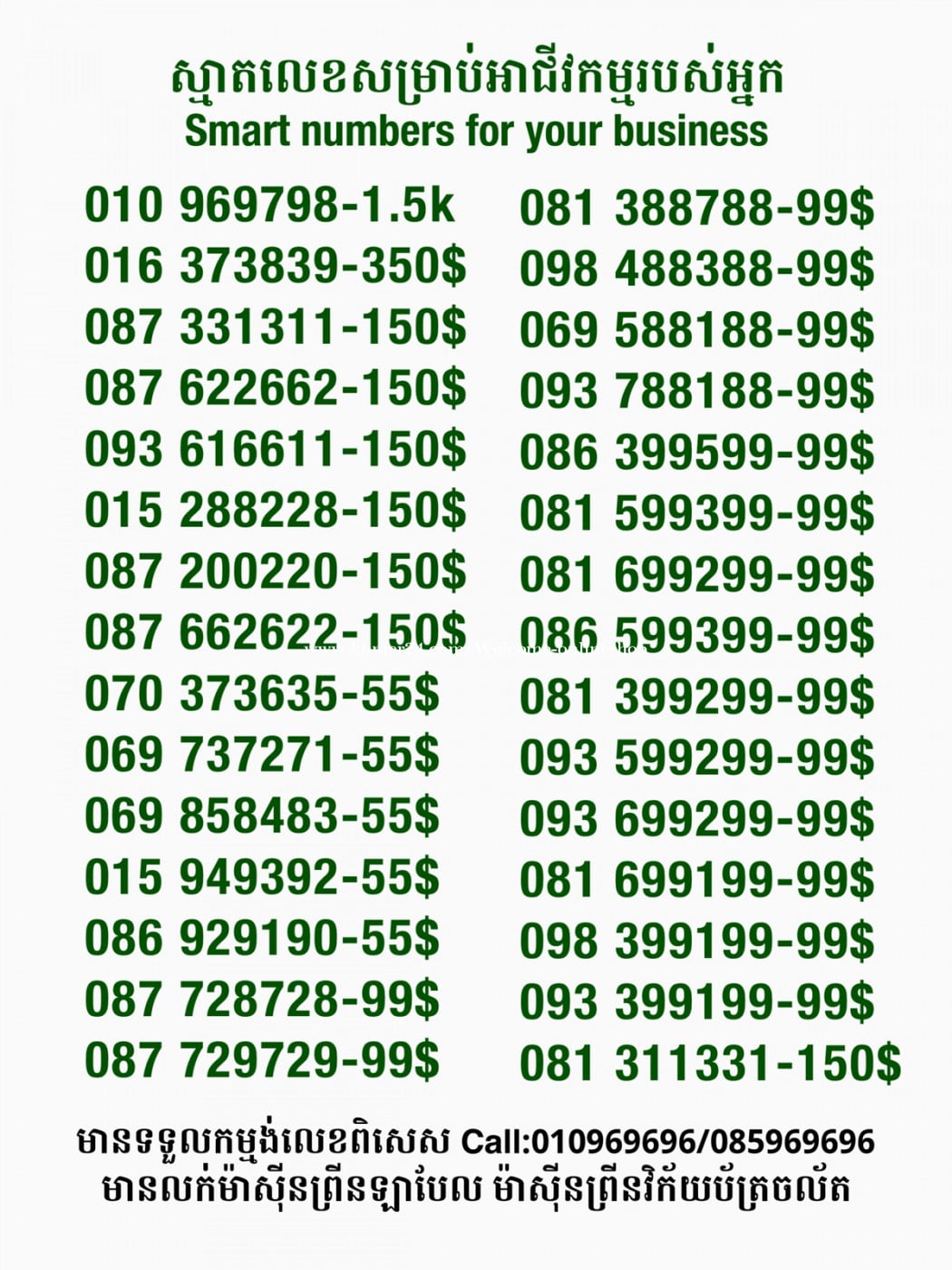 មានលក់លេខពិសេស មានទទួលកម្មង់លេខពិសេស មានលក់ម៉ាស៊ីនព្រីនឡាបែលចល័ត មានលក់ម៉ាស៊ីនព្រីនវិក័យប័ត្រចល័ត មានលក់សម្ភារៈប្រើប្រាស់ក្នុងគ្រួសារ Smart Prime II 1=30$ Smart hero 1=40$ ទូរសព្ទថ្មីក្នុងប្រអប់ លក់ធូរៗរហូតអស់ពីស្តុក អាចប្រើជាឧបករណ៍សម្រាប់ស៊ែរ wifi បាន ទំនាក់ទំនង(ខ្មែរ | English | 中文):010969696 | 085969696 Telegram: https://t.me/W9696 Telegram group: https://t.me/konkonnada អាសយដ្ឋាន:ផ្ទះលេខ២៣ ផ្លូវបេតុងលេខ១ ភូមិទួលពង្រ សង្កាត់ចោមចៅ ខណ្ឌពោធិ៍សែនជ័យ រាជធានីភ្នំពេញ ទីតាំង https://goo.gl/maps/8moqW4iTHUfJEvWQ9 ដើម្បីស្វែងរកលេខអាជីវកម្មដែលលោកអ្នកពេញចិត្ត សូមចូលទៅកាន់:https://www.khmer24.com/Welcome-onlineshop