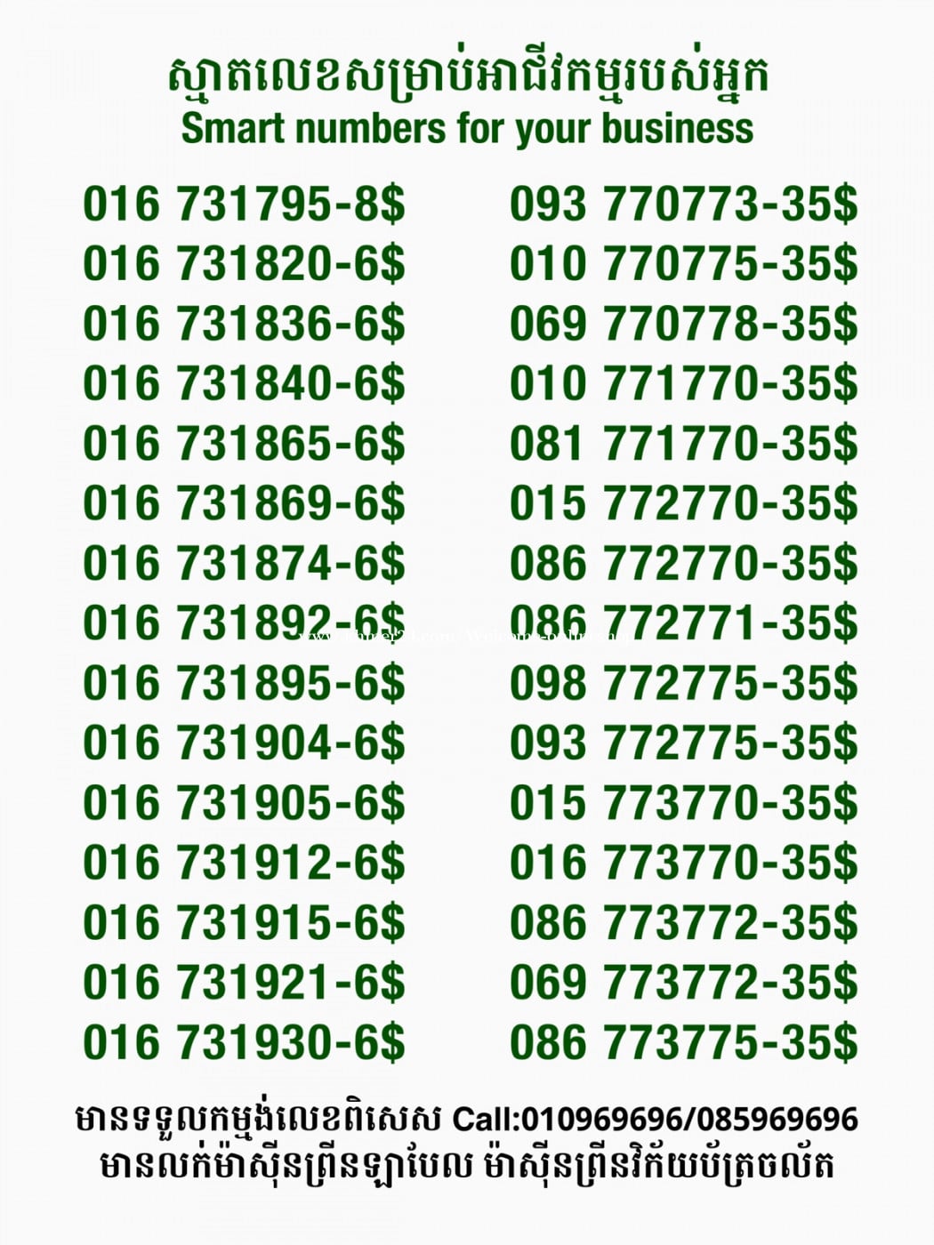 មានលក់លេខពិសេស មានទទួលកម្មង់លេខពិសេស មានលក់ម៉ាស៊ីនព្រីនឡាបែលចល័ត មានលក់ម៉ាស៊ីនព្រីនវិក័យប័ត្រចល័ត មានលក់សម្ភារៈប្រើប្រាស់ក្នុងគ្រួសារ Smart Prime II 1=30$ Smart hero 1=40$ ទូរសព្ទថ្មីក្នុងប្រអប់ លក់ធូរៗរហូតអស់ពីស្តុក អាចប្រើជាឧបករណ៍សម្រាប់ស៊ែរ wifi បាន ទំនាក់ទំនង(ខ្មែរ | English | 中文):010969696 | 085969696 Telegram: https://t.me/W9696 Telegram group: https://t.me/konkonnada អាសយដ្ឋាន:ផ្ទះលេខ២៣ ផ្លូវបេតុងលេខ១ ភូមិទួលពង្រ សង្កាត់ចោមចៅ ខណ្ឌពោធិ៍សែនជ័យ រាជធានីភ្នំពេញ ទីតាំង https://goo.gl/maps/8moqW4iTHUfJEvWQ9 ដើម្បីស្វែងរកលេខអាជីវកម្មដែលលោកអ្នកពេញចិត្ត សូមចូលទៅកាន់:https://www.khmer24.com/Welcome-onlineshop