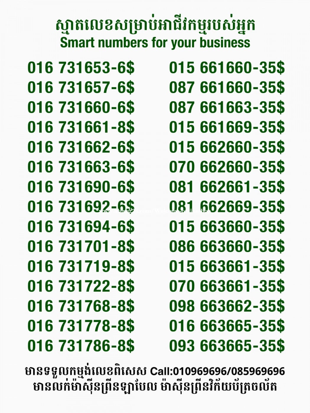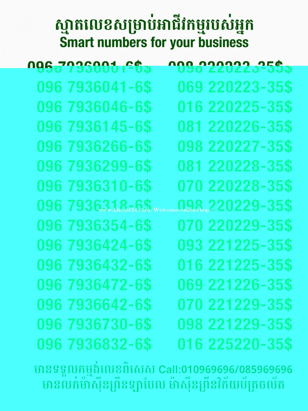 មានលក់លេខពិសេស មានទទួលកម្មង់លេខពិសេស មានលក់ម៉ាស៊ីនព្រីនឡាបែលចល័ត មានលក់ម៉ាស៊ីនព្រីនវិក័យប័ត្រចល័ត មានលក់សម្ភារៈប្រើប្រាស់ក្នុងគ្រួសារ Smart Prime II 1=30$ Smart hero 1=40$ ទូរសព្ទថ្មីក្នុងប្រអប់ លក់ធូរៗរហូតអស់ពីស្តុក អាចប្រើជាឧបករណ៍សម្រាប់ស៊ែរ wifi បាន ទំនាក់ទំនង(ខ្មែរ | English | 中文):010969696 | 085969696 Telegram: https://t.me/W9696 Telegram group: https://t.me/konkonnada អាសយដ្ឋាន:ផ្ទះលេខ២៣ ផ្លូវបេតុងលេខ១ ភូមិទួលពង្រ សង្កាត់ចោមចៅ ខណ្ឌពោធិ៍សែនជ័យ រាជធានីភ្នំពេញ ទីតាំង https://goo.gl/maps/8moqW4iTHUfJEvWQ9 ដើម្បីស្វែងរកលេខអាជីវកម្មដែលលោកអ្នកពេញចិត្ត សូមចូលទៅកាន់:https://www.khmer24.com/Welcome-onlineshop