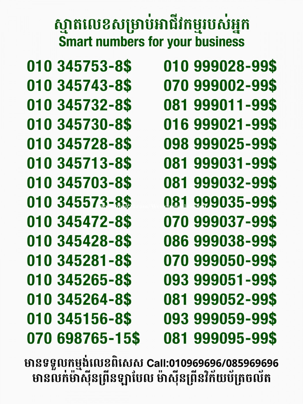 មានលក់លេខពិសេស មានទទួលកម្មង់លេខពិសេស មានលក់ម៉ាស៊ីនព្រីនឡាបែលចល័ត មានលក់ម៉ាស៊ីនព្រីនវិក័យប័ត្រចល័ត មានលក់សម្ភារៈប្រើប្រាស់ក្នុងគ្រួសារ Smart Prime II 1=30$ Smart hero 1=40$ ទូរសព្ទថ្មីក្នុងប្រអប់ លក់ធូរៗរហូតអស់ពីស្តុក អាចប្រើជាឧបករណ៍សម្រាប់ស៊ែរ wifi បាន ទំនាក់ទំនង(ខ្មែរ | English | 中文):010969696 | 085969696 Telegram: https://t.me/W9696 Telegram group: https://t.me/konkonnada អាសយដ្ឋាន:ផ្ទះលេខ២៣ ផ្លូវបេតុងលេខ១ ភូមិទួលពង្រ សង្កាត់ចោមចៅ ខណ្ឌពោធិ៍សែនជ័យ រាជធានីភ្នំពេញ ទីតាំង https://goo.gl/maps/8moqW4iTHUfJEvWQ9 ដើម្បីស្វែងរកលេខអាជីវកម្មដែលលោកអ្នកពេញចិត្ត សូមចូលទៅកាន់:https://www.khmer24.com/Welcome-onlineshop